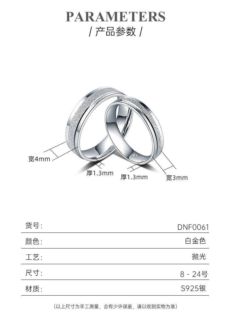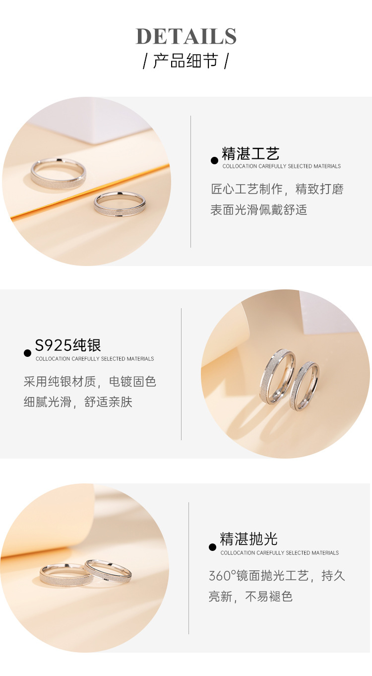 Anillo de pareja de plata esterlina 925 par de anillo liso esmerilado anillo sólido anillo de hombres y mujeres regalo para novia en el Día de San Valentín chino