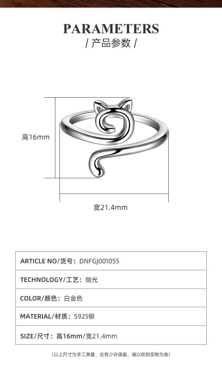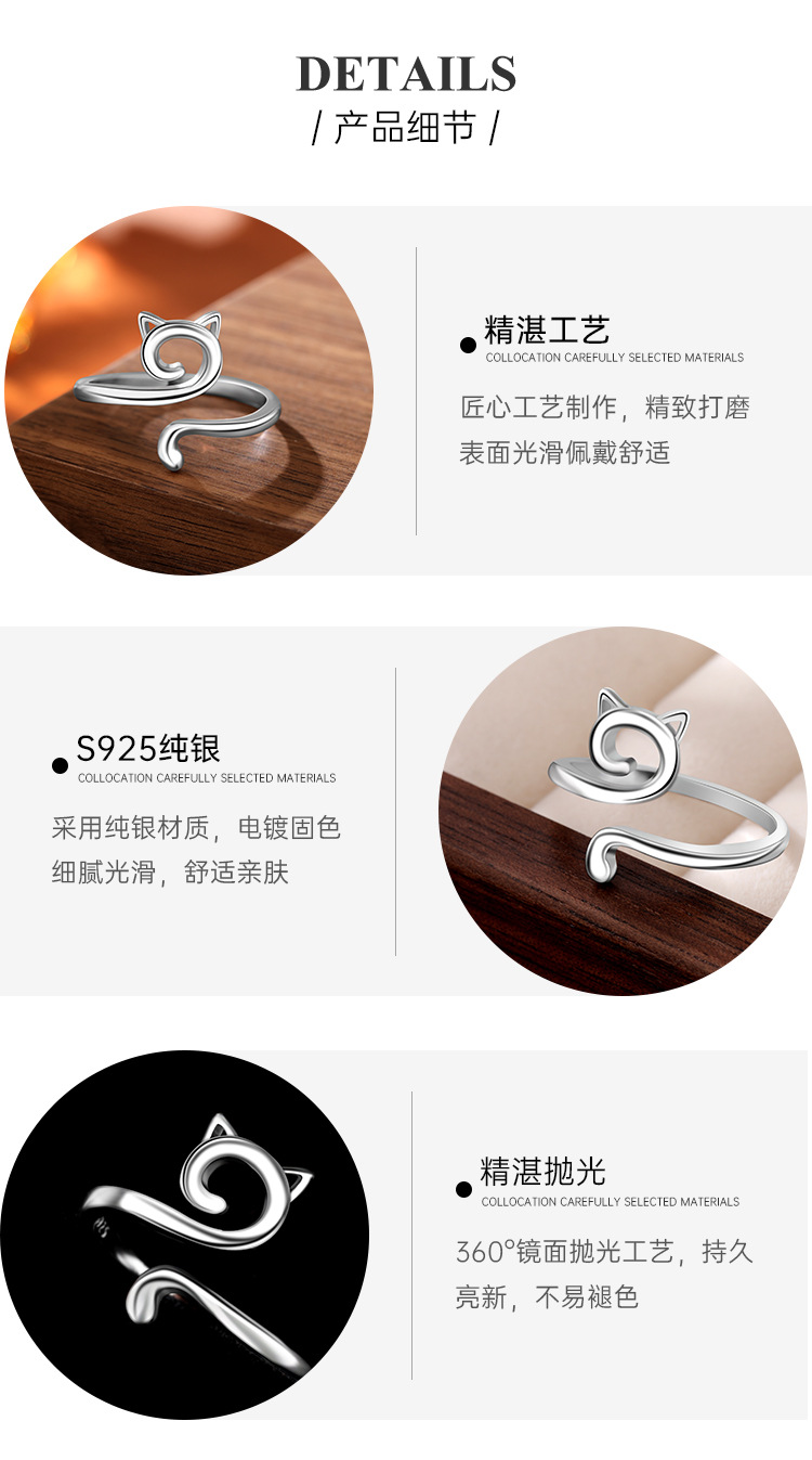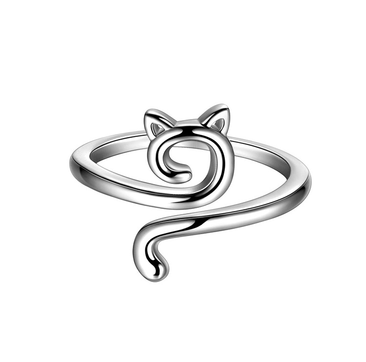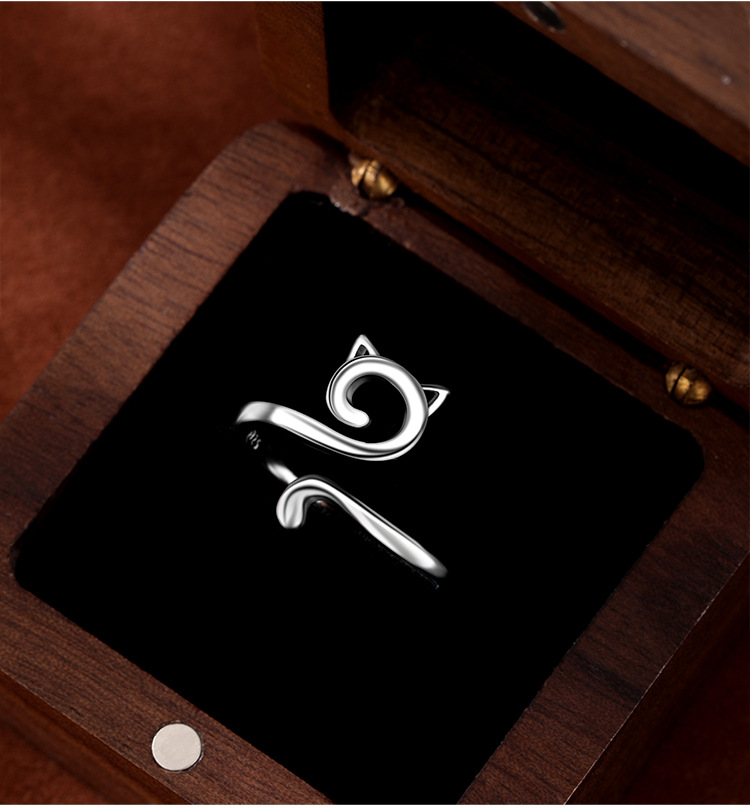 Nuevo gancho europeo y americano transfronterizo anillo de gato hueco geométrico plata de ley 925 apertura de anillo de gatito animal simple