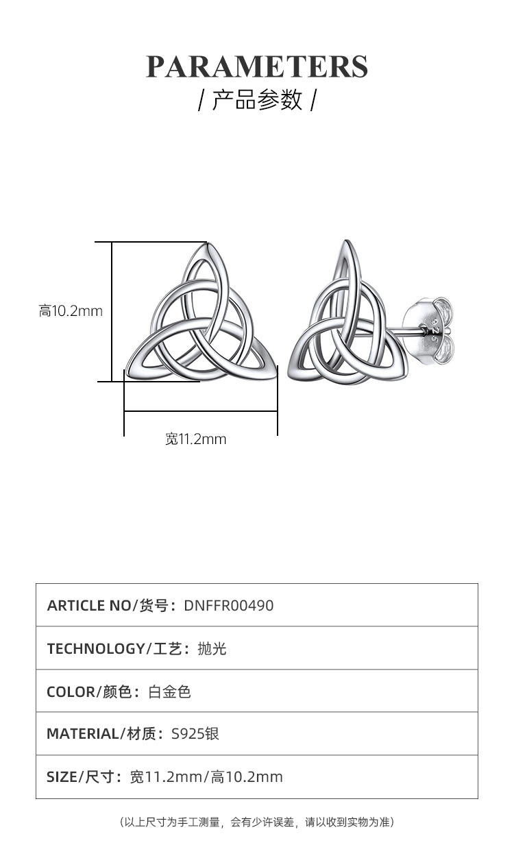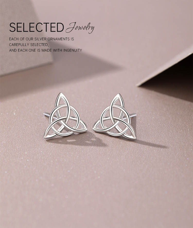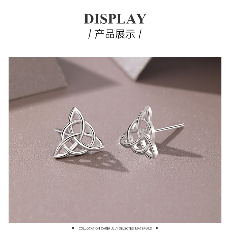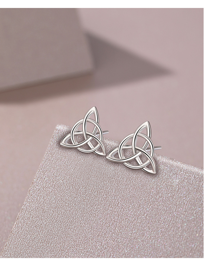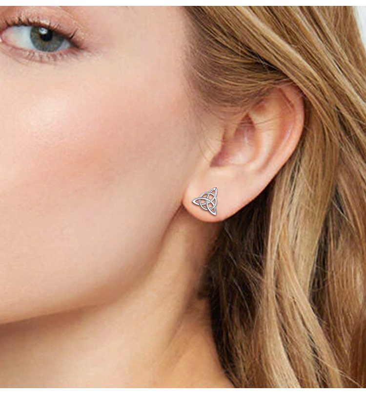 TEMU transfronterizo 925 plata triángulo celta pendientes de nudo femenino pop europeo y americano hueco cruzado otoño invierno pendientes