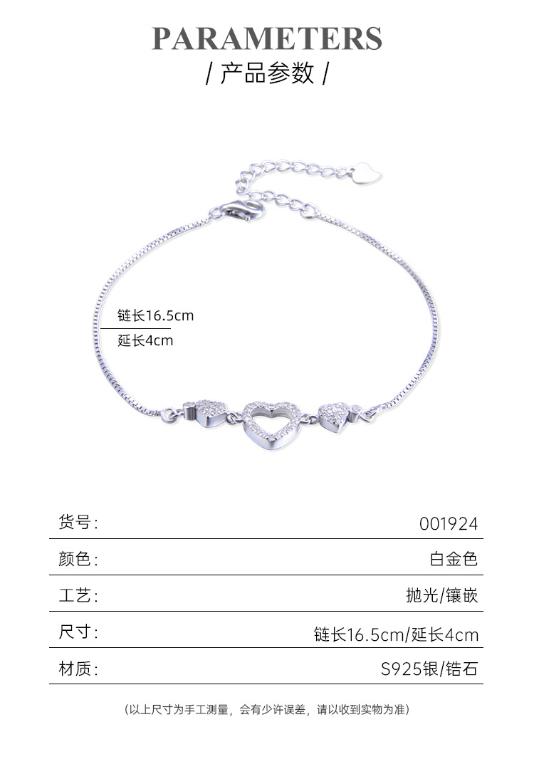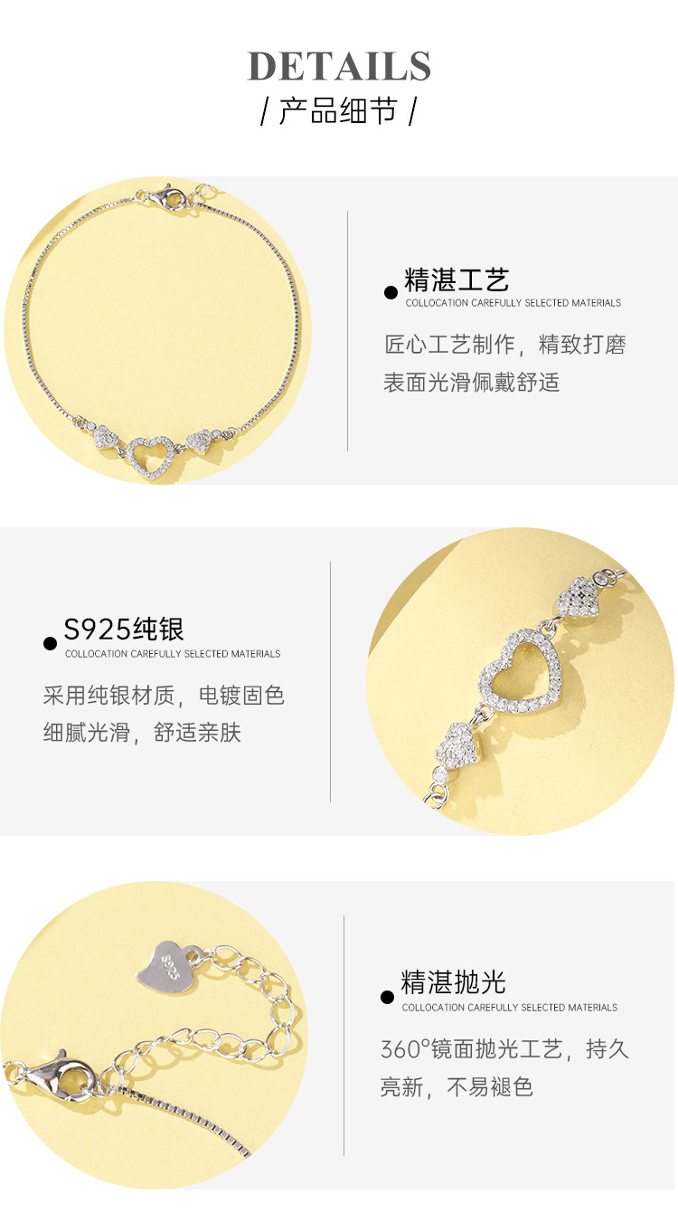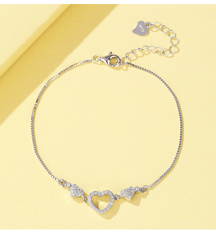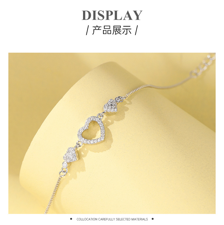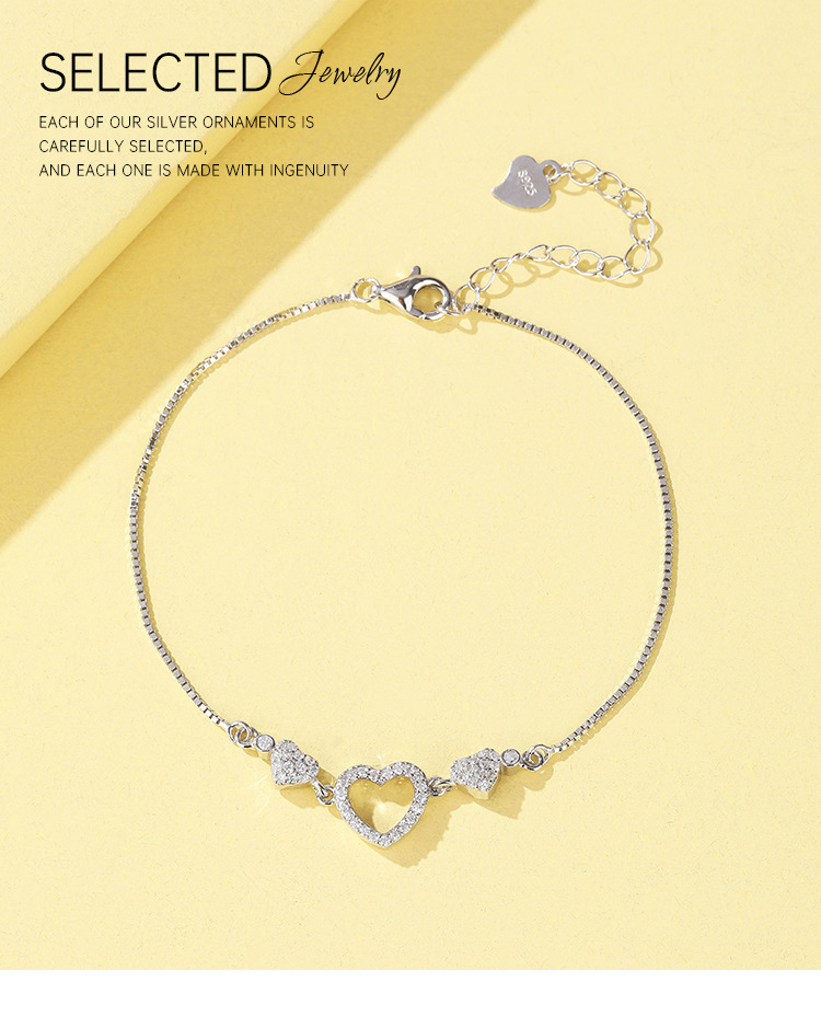 S925 plata esterlina en forma de corazón hueco pulsera femenina estilo coreano moda simple circón micro-incrustaciones pulsera estudiante novias joyería de la mano