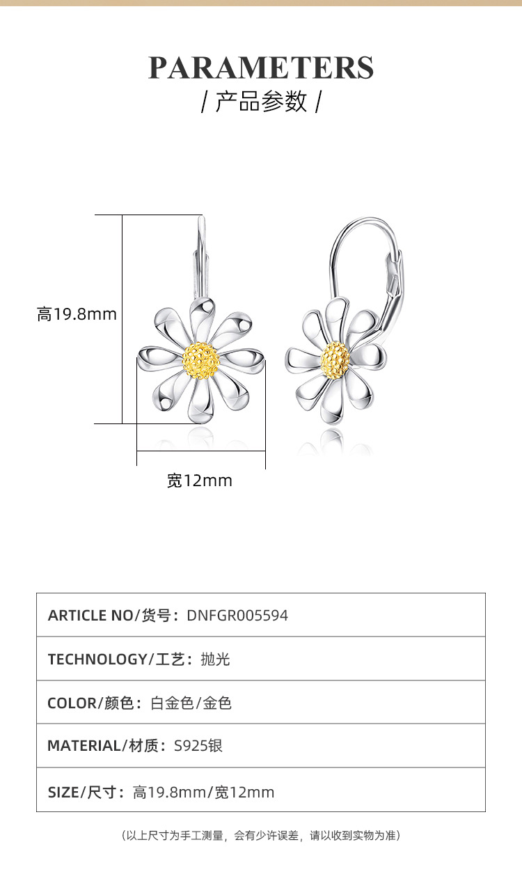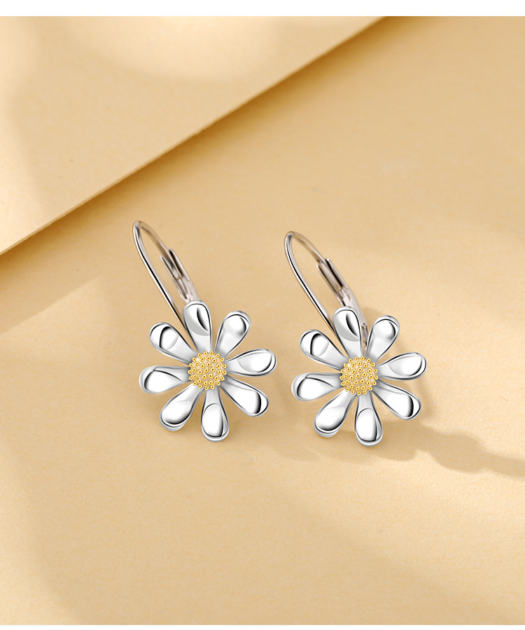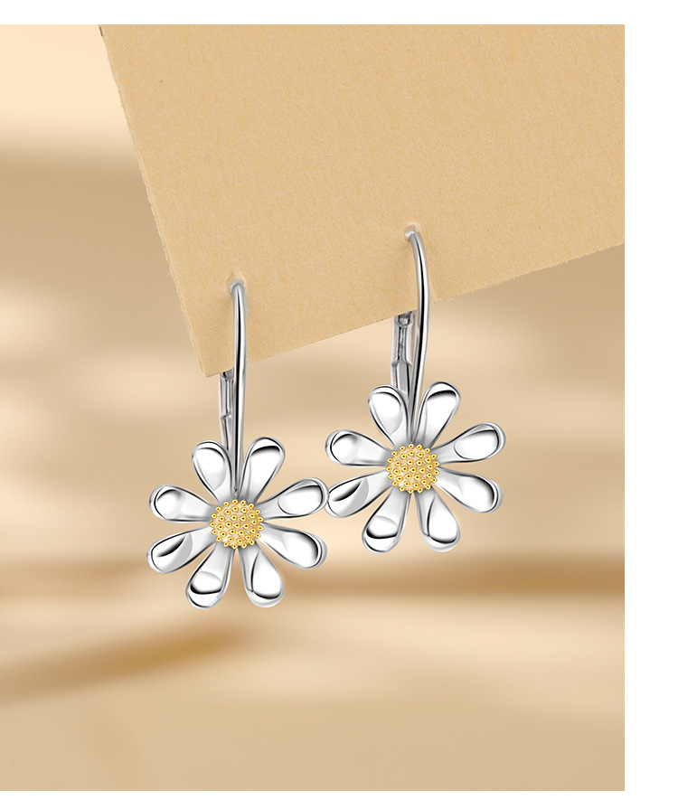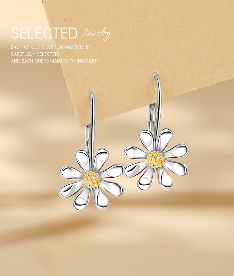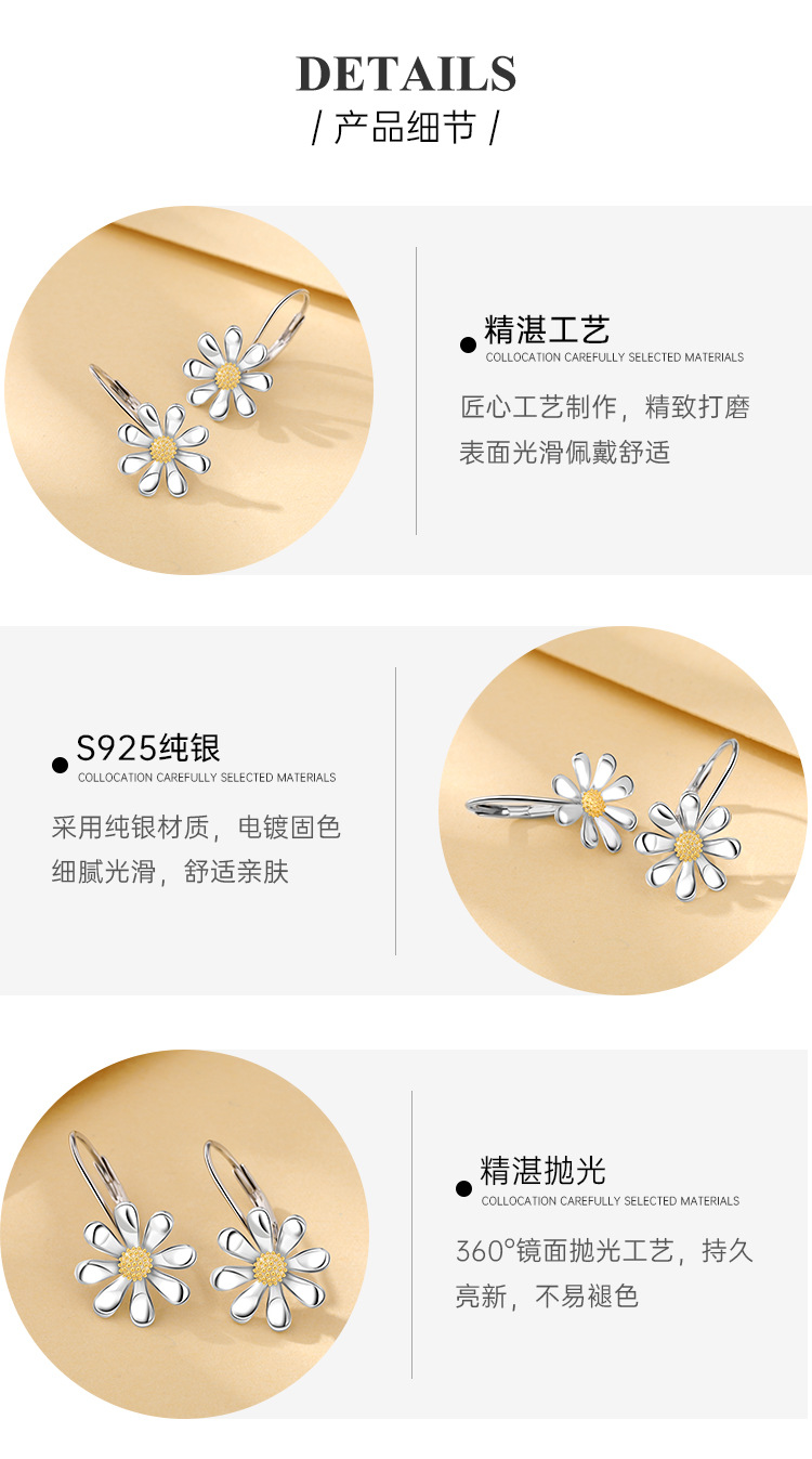 Nuevo estilo transfronterizo S925 plata de ley pequeña margarita flor de sol pendientes botones de oreja mujeres de nicho pendientes de girasol de sentido avanzado