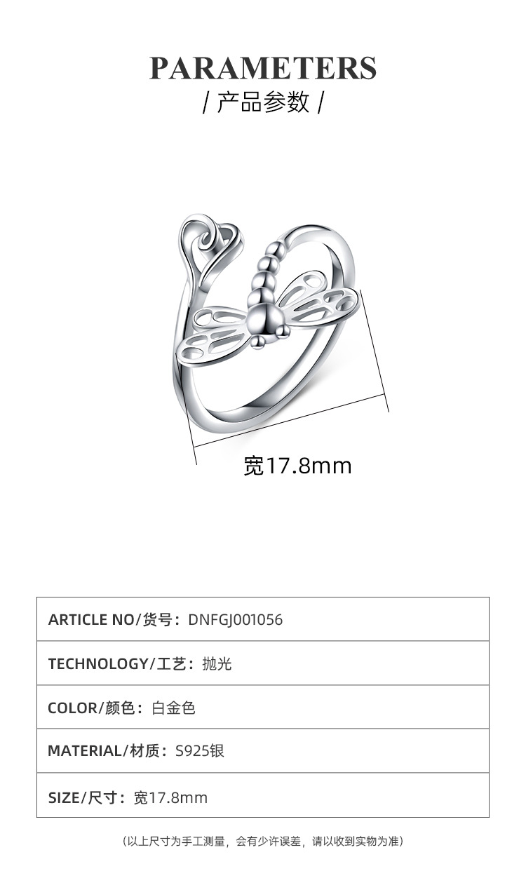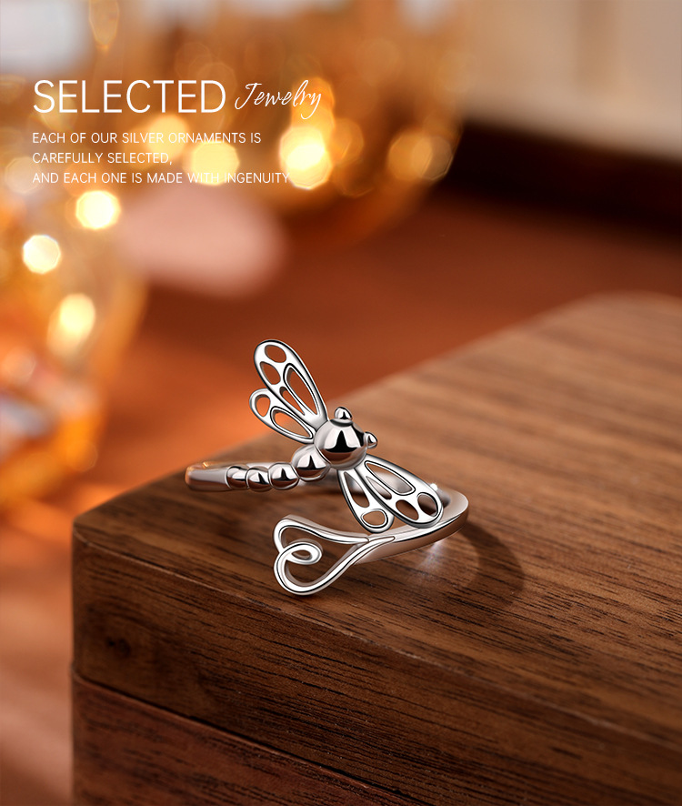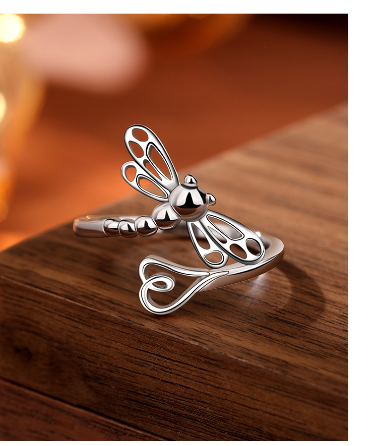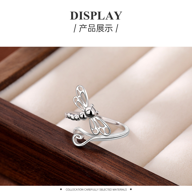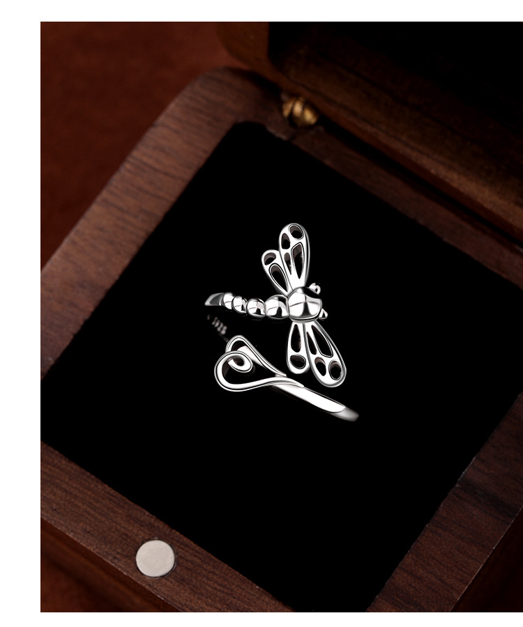 Nuevo transfronterizo de plata esterlina 925 temperamento elegante anillo libélula nicho de diseño de moda femenina apertura anillo ajustable