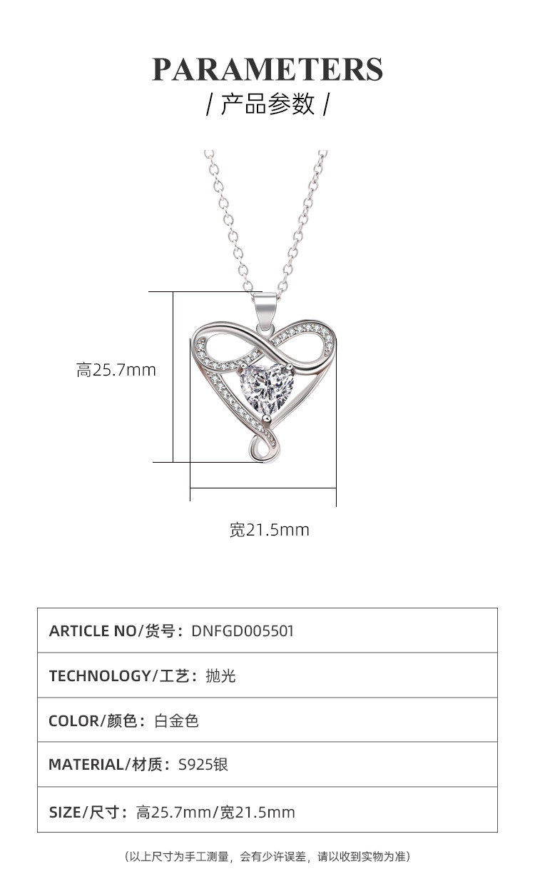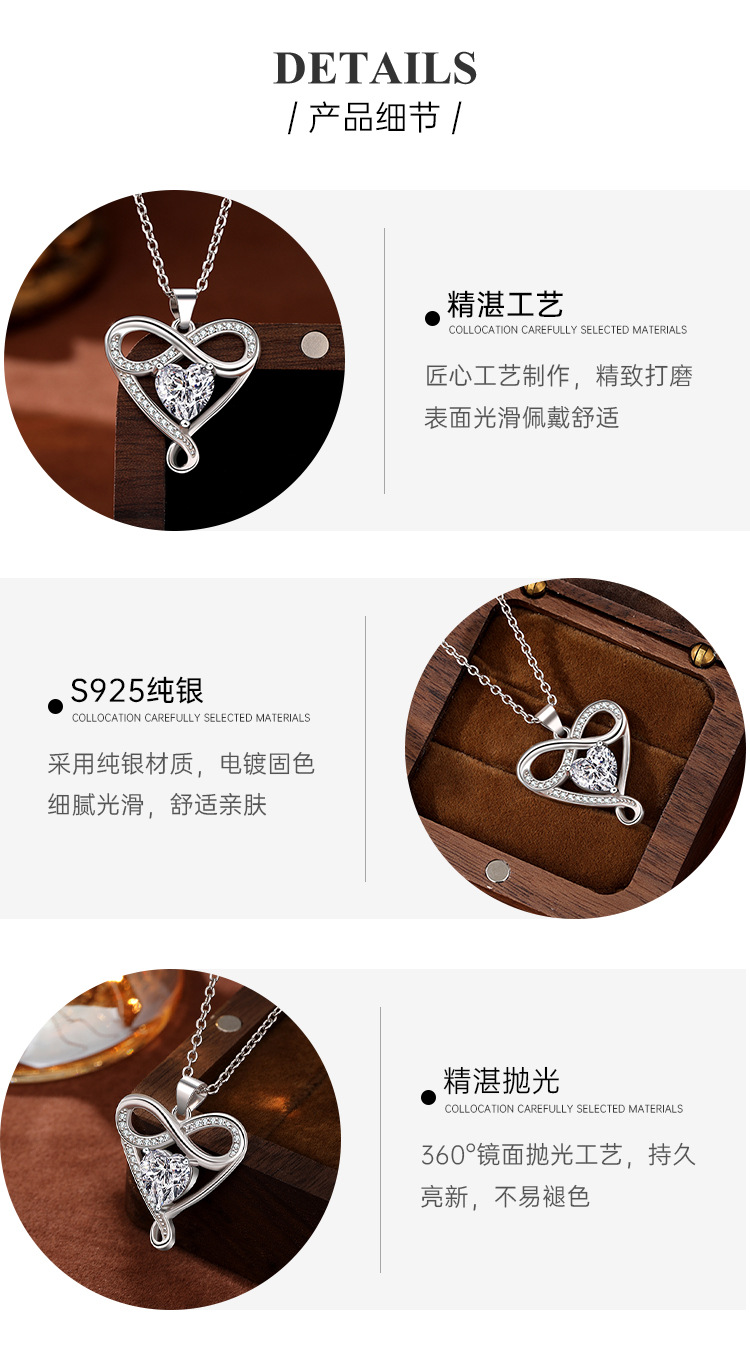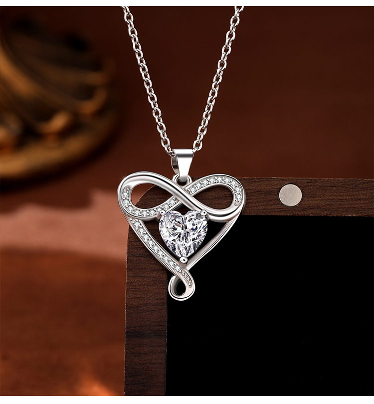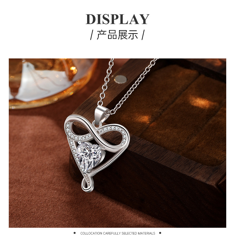Transfronterizo Amazon S925 plata de ley de 8 caracteres collar de amor infinito en forma de corazón mujer todo fósforo colgante de alta gama para novia