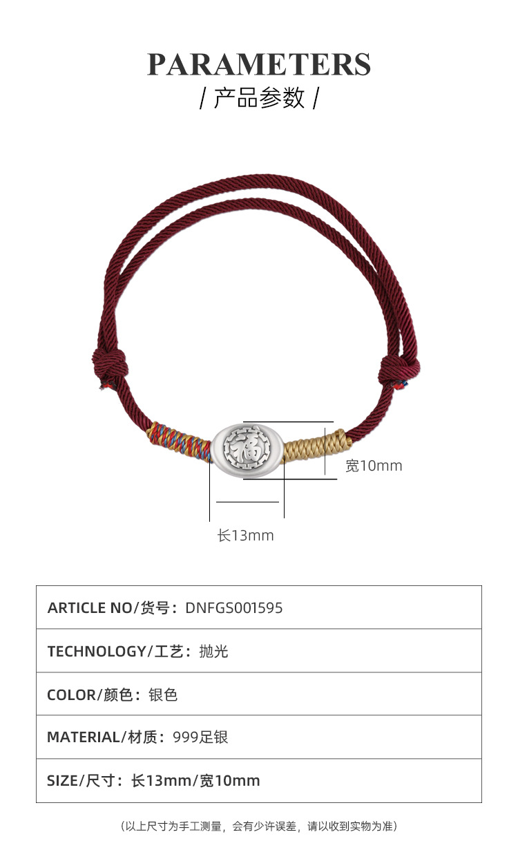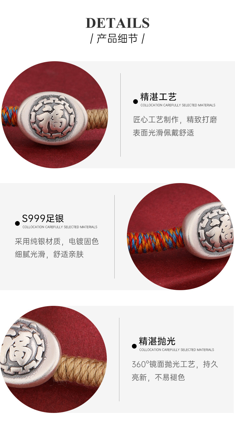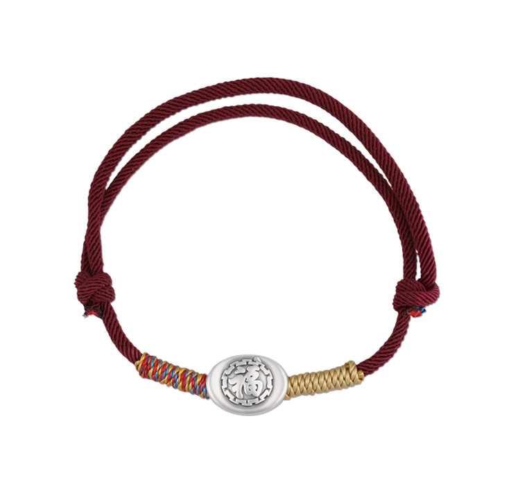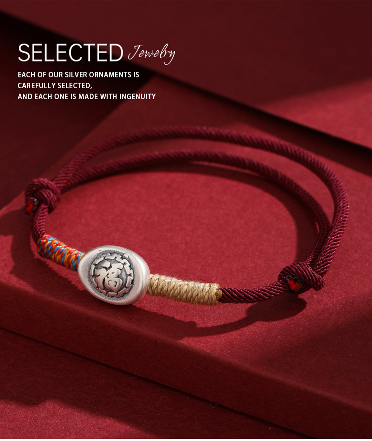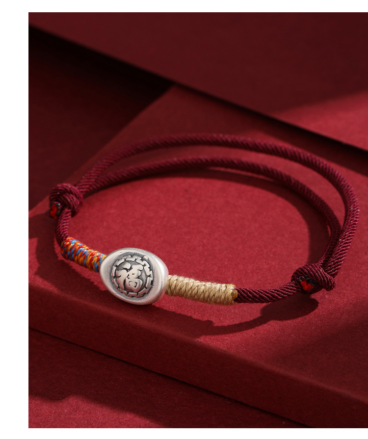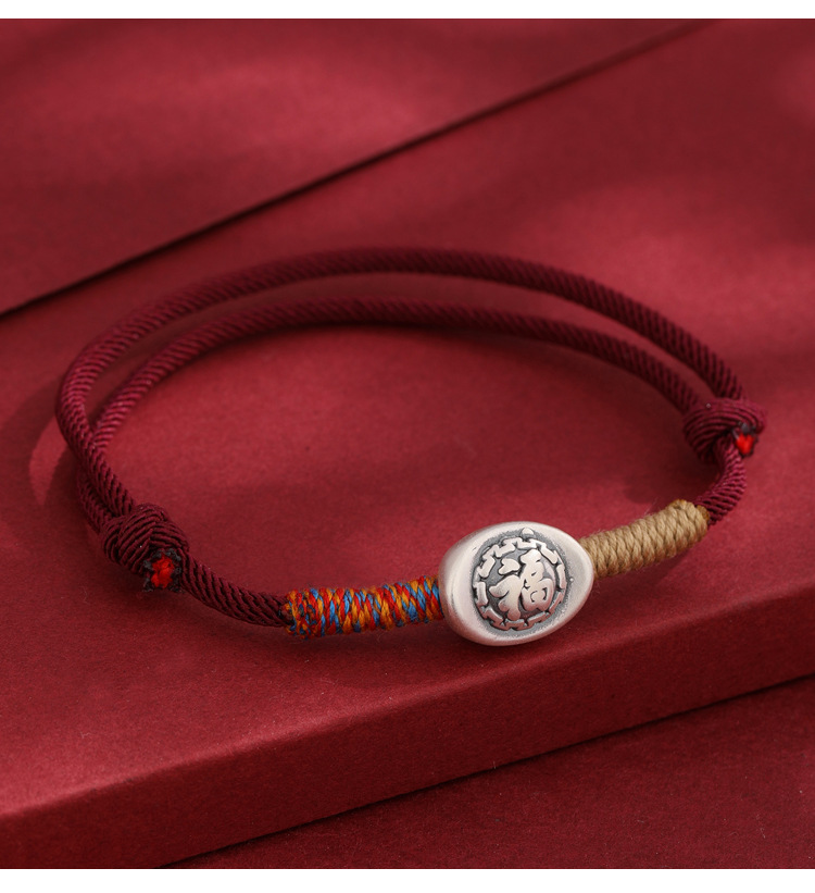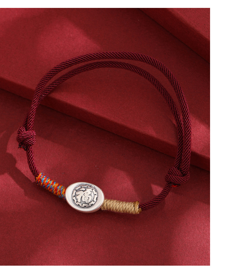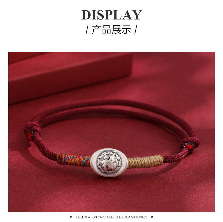 2025 nuevo 999 pie de plata Fu caracteres cuerdas de mano para hombres y mujeres año de la vida año de la serpiente tejido a mano pulsera de cuerda roja