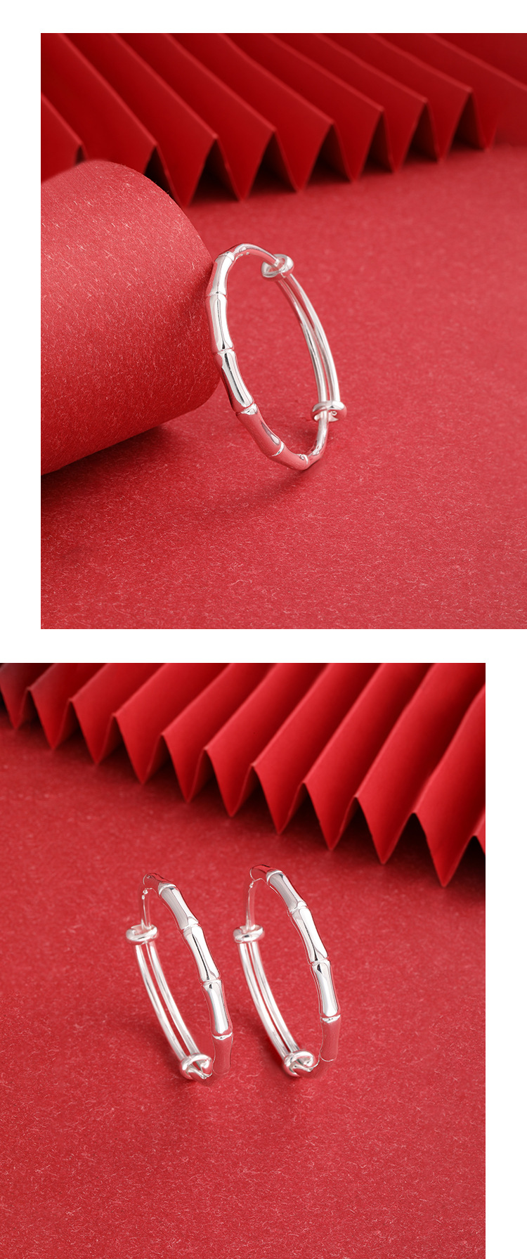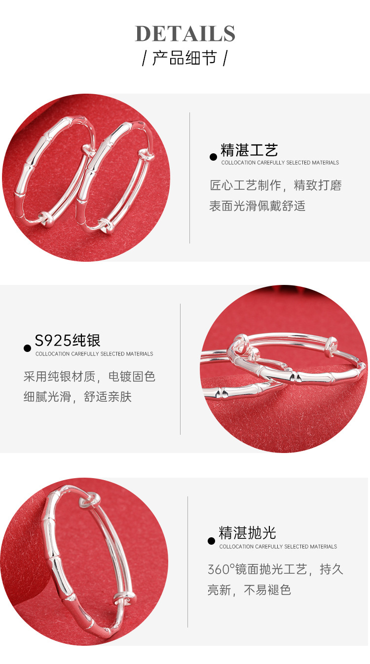 | Color | Un par de pulseras de plata de bambú alrededor de 25.3g |