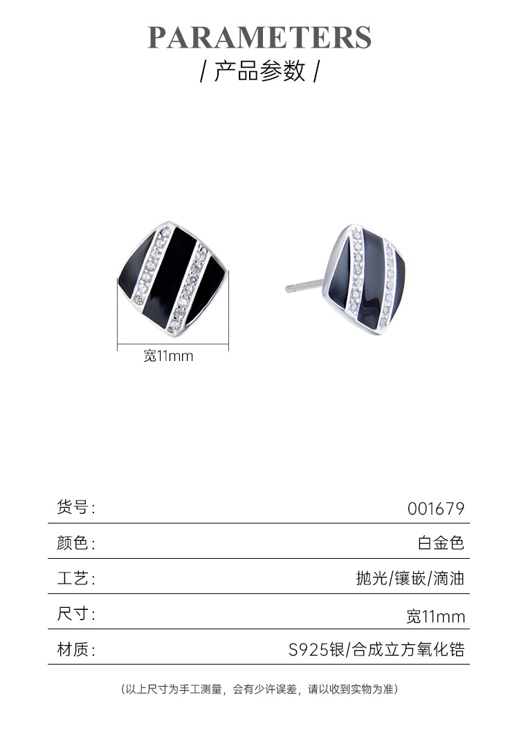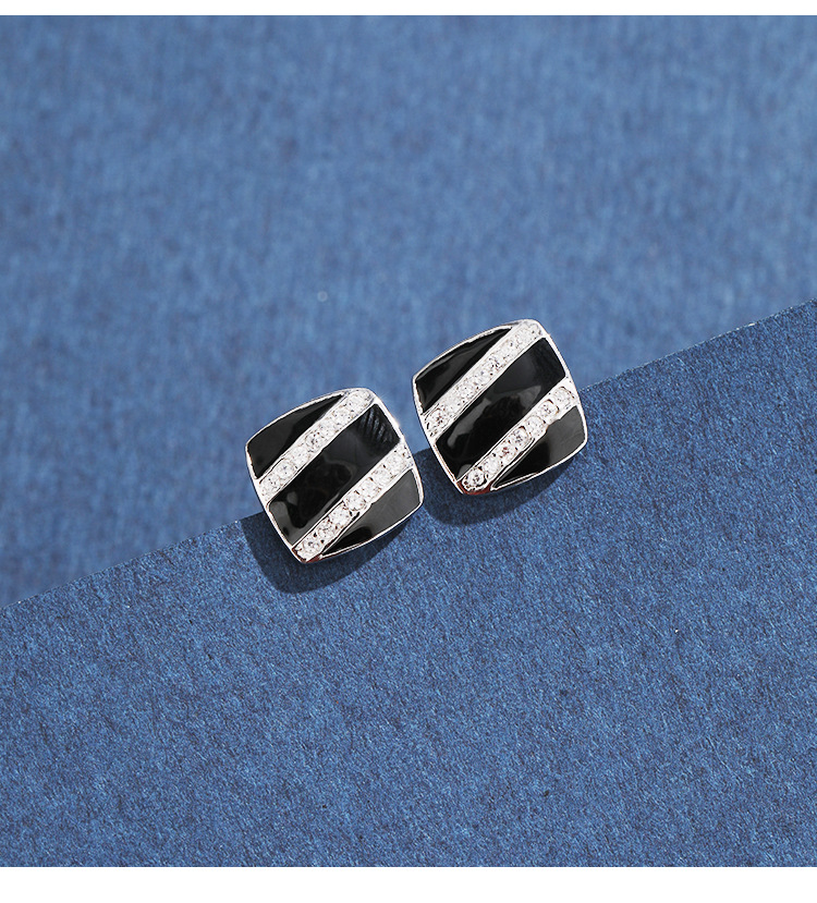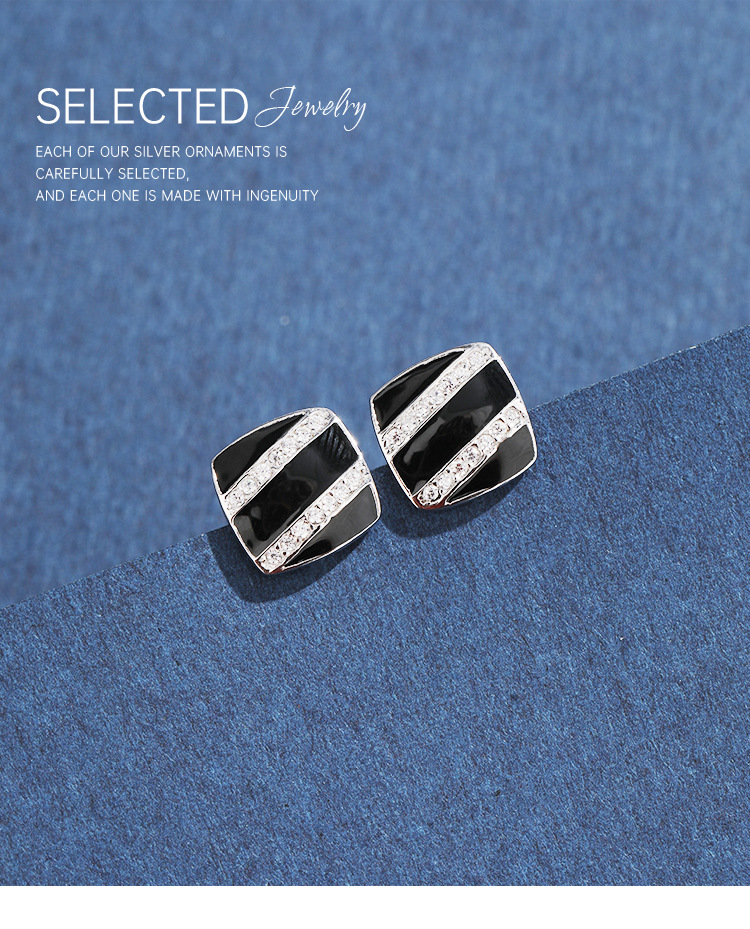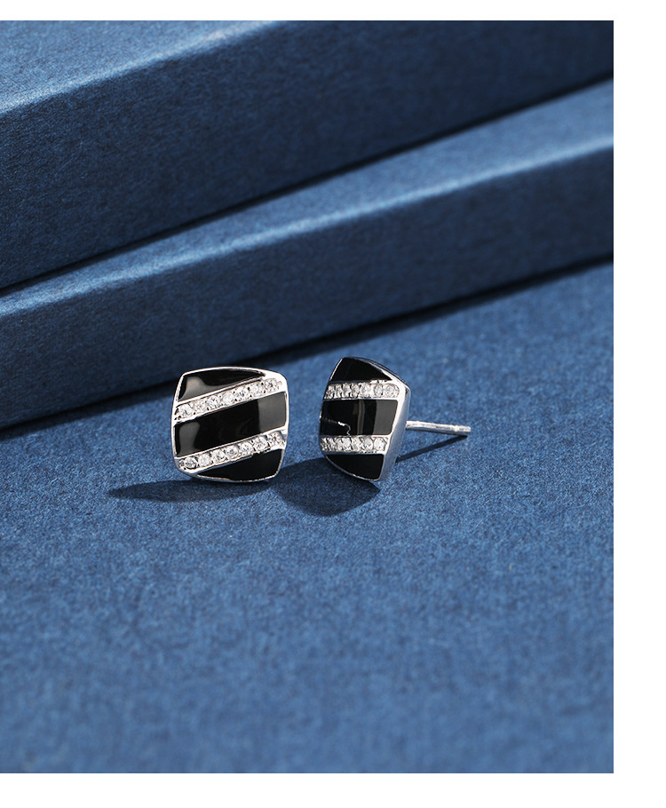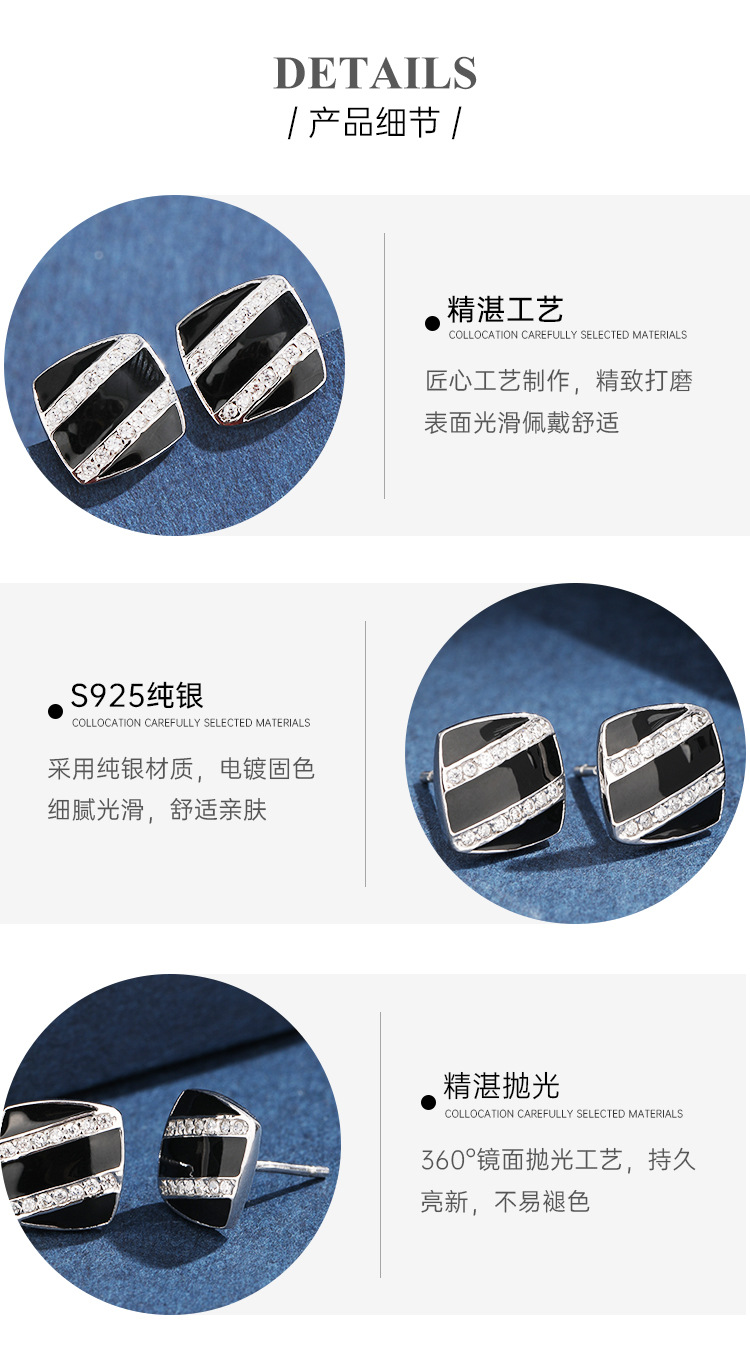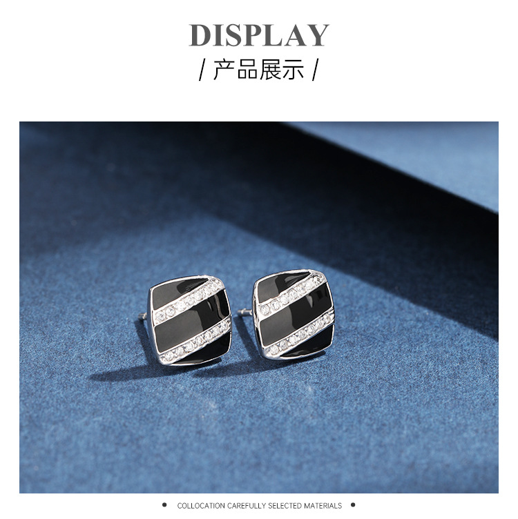 Cuadrado pendientes negros de plata esterlina femenina 925 diseño único de nicho pernos de zircón temperamento alta sensación de goteo de aceite pendientes