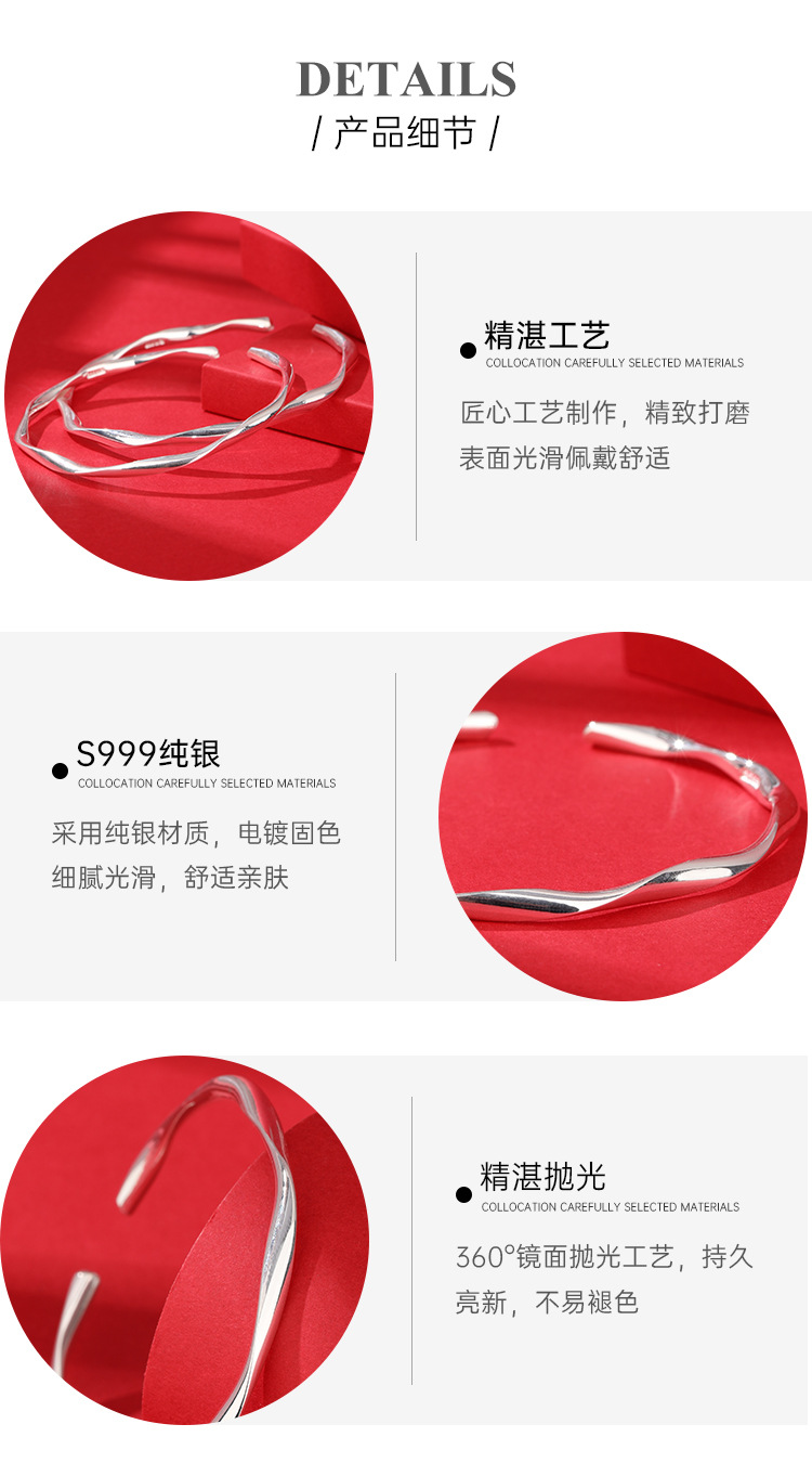 Mobius anillo pulsera de plata 999 plata esterlina sólida plata pura joven nicho de alta calidad pulsera de plata para la novia