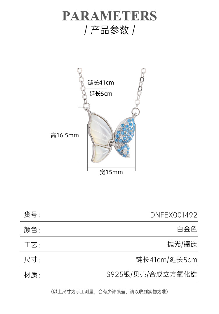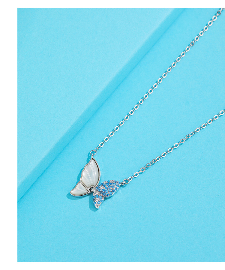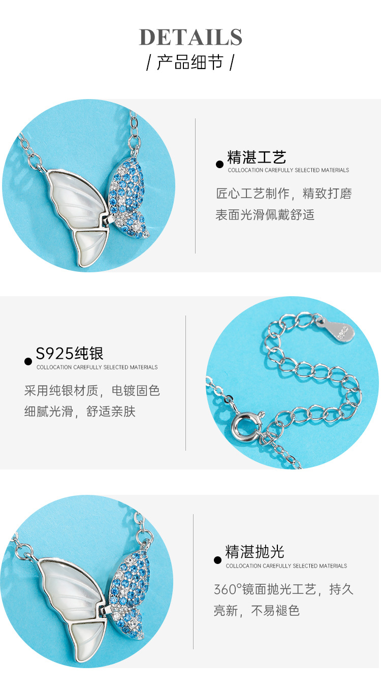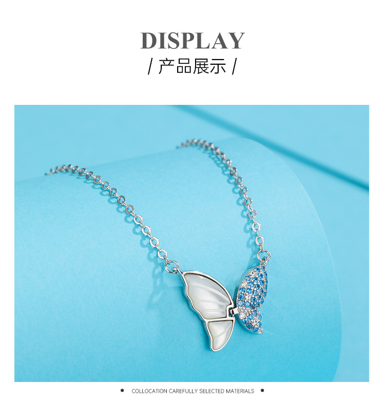 Azul blanco fritillary mariposa Collar para las mujeres 925 Luz de plata esterlina lujo nicho diseño avanzado sentido 2024 nueva cadena clavícula