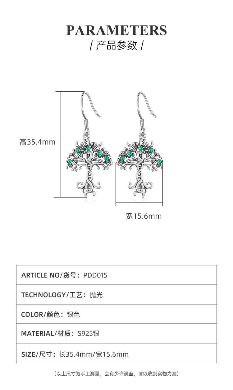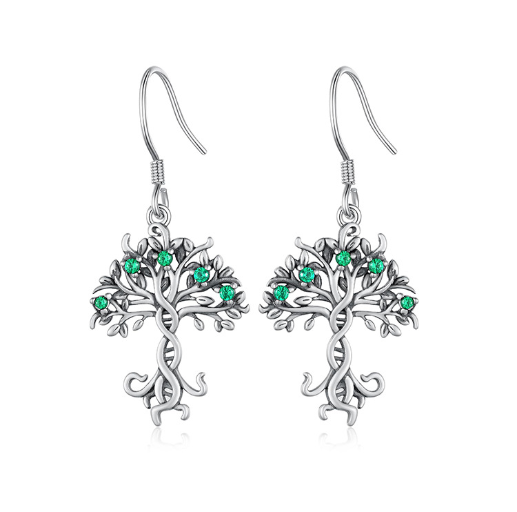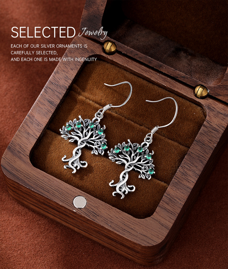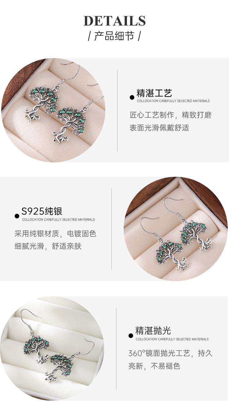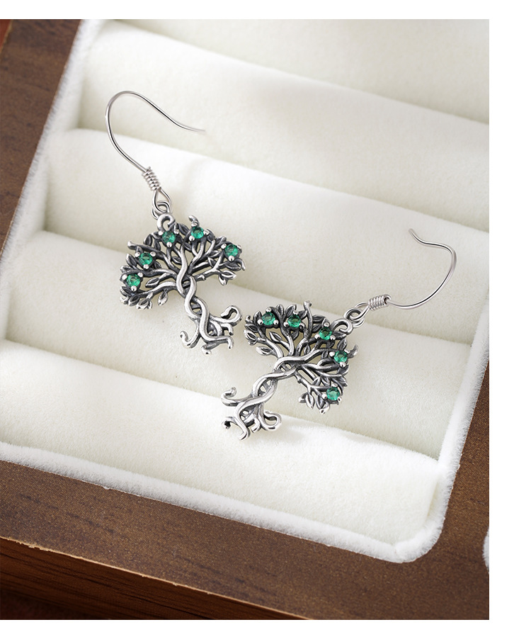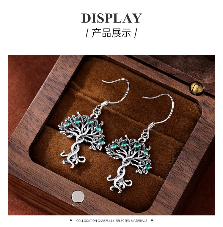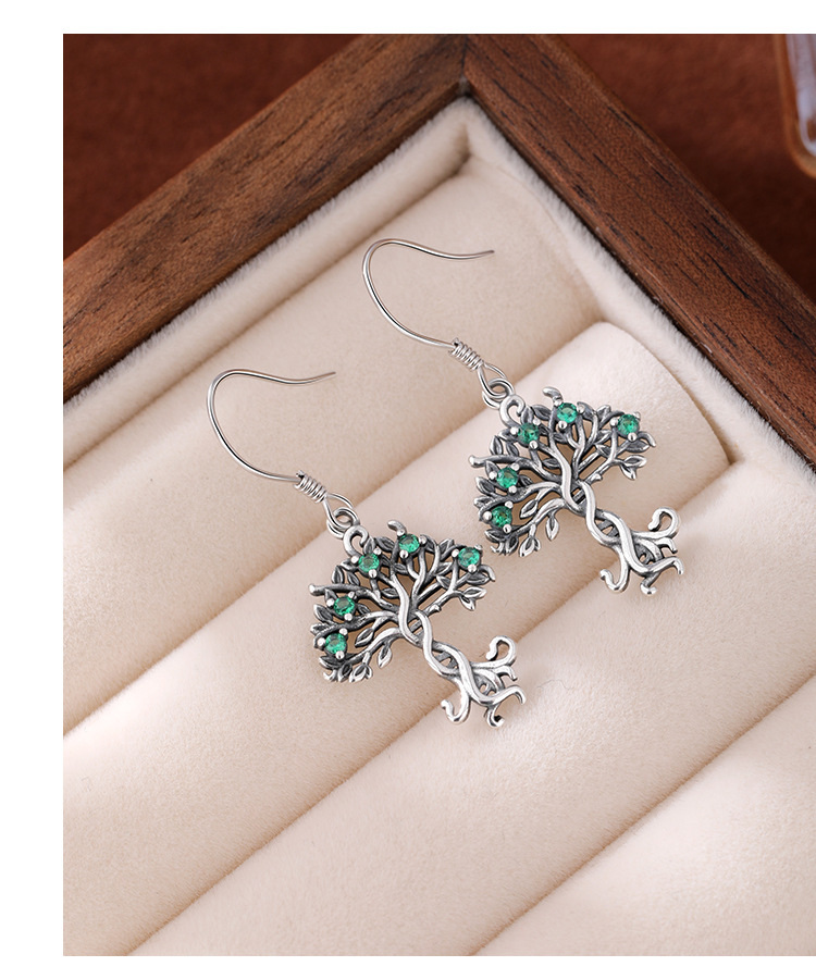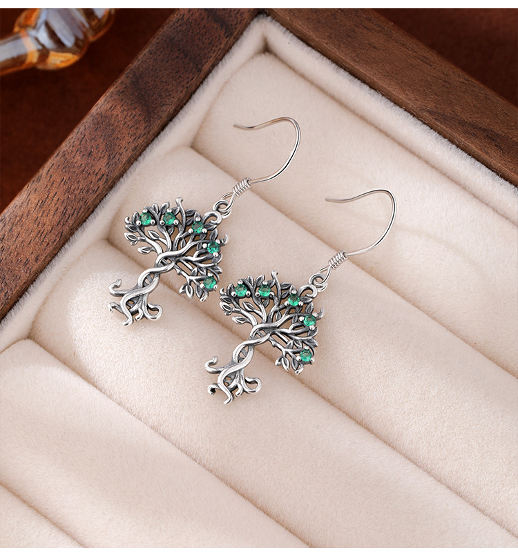 Pendientes con incrustaciones huecas de plata de ley 925 nuevos transfronterizos Pendientes INS Tree of Life Pendientes de todo fósforo retro europeo y americano femenino