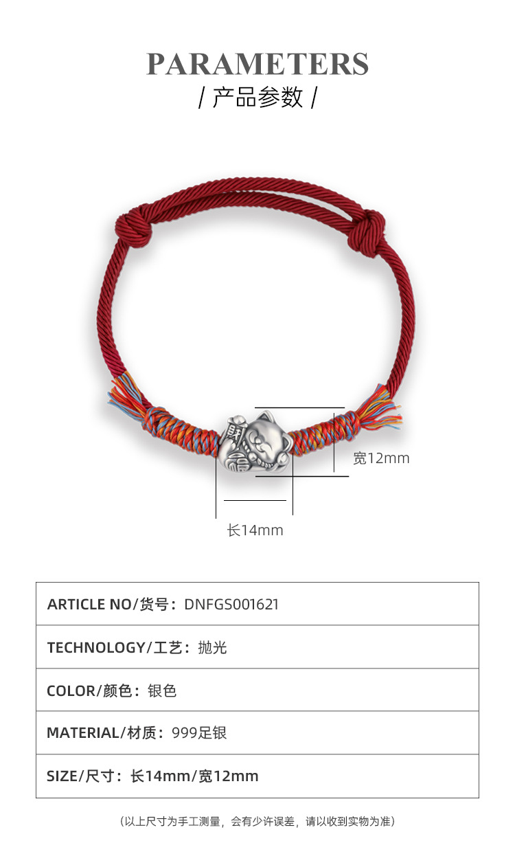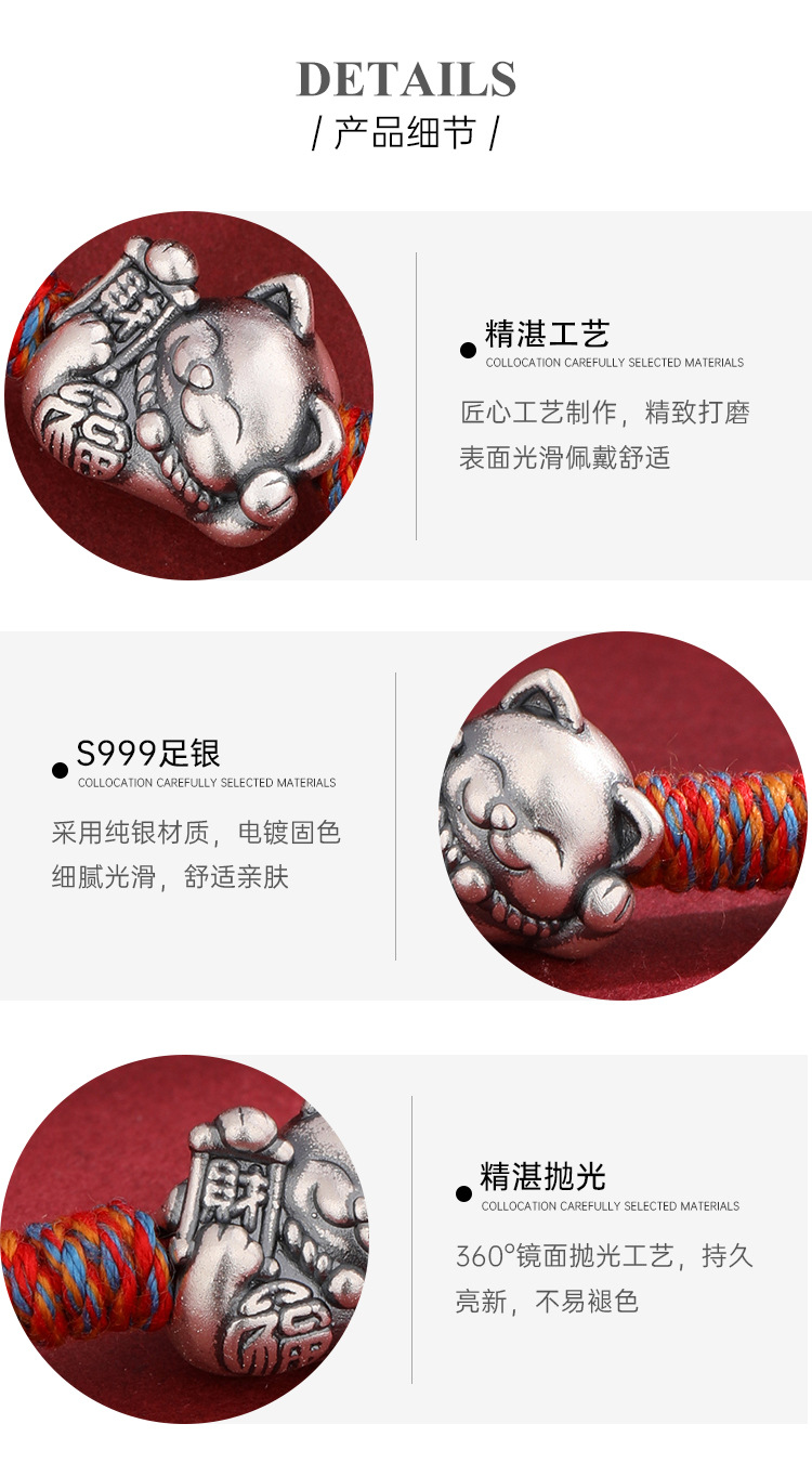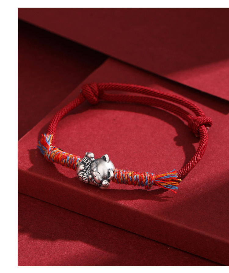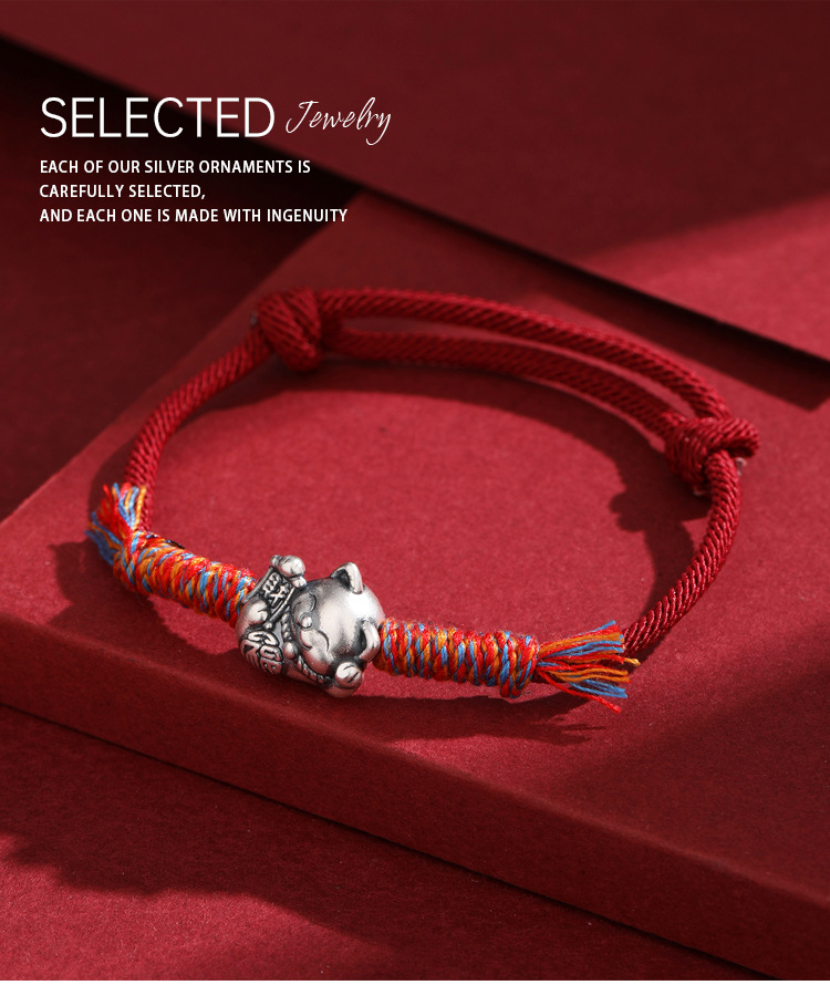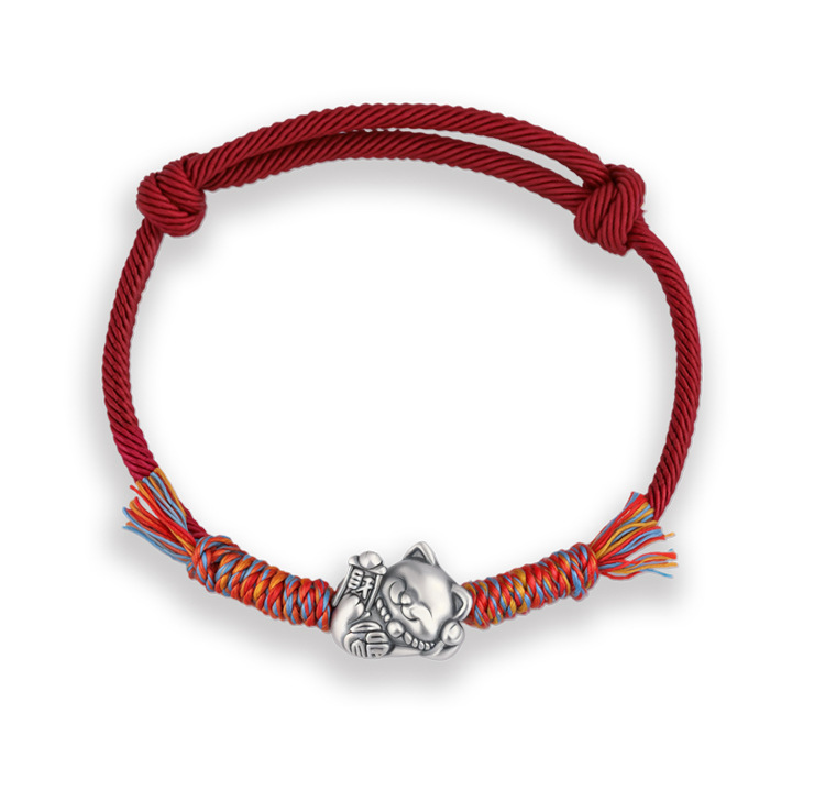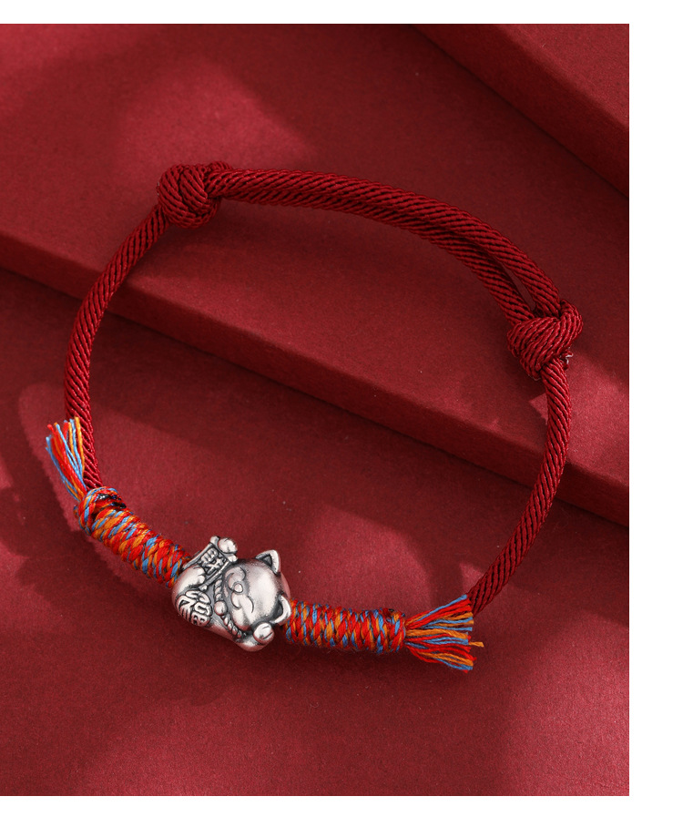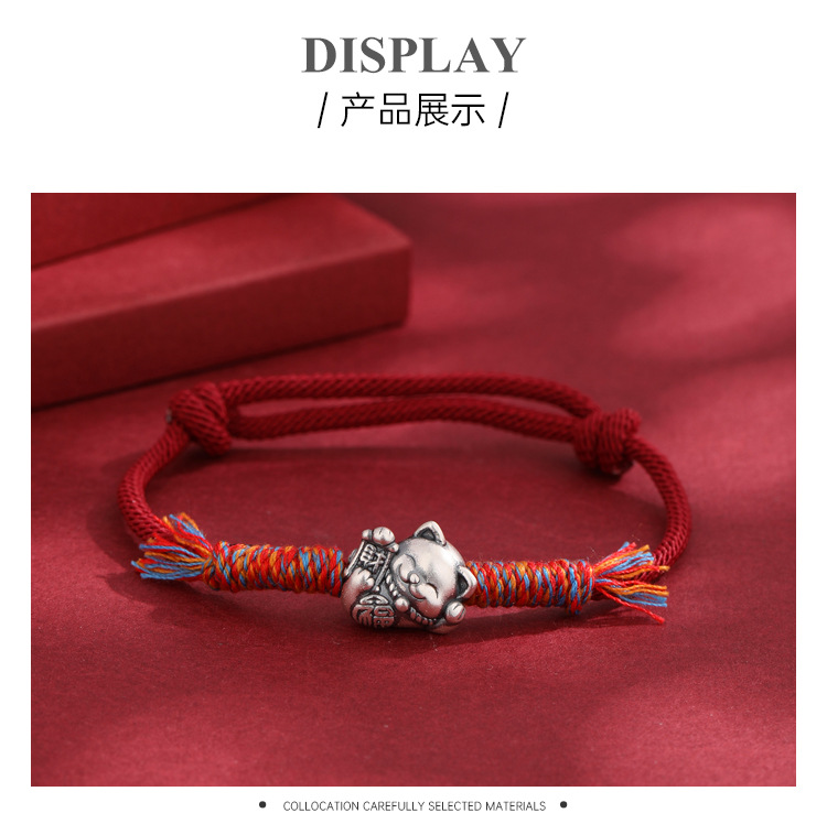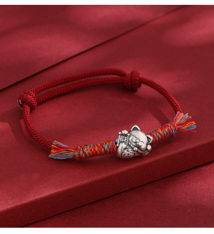 999 pie de plata adorable pulsera de gato de fortuna mujer tejida a mano cuerda roja ajustable este año de vida cuerda de mano regalo de Año Nuevo masculino