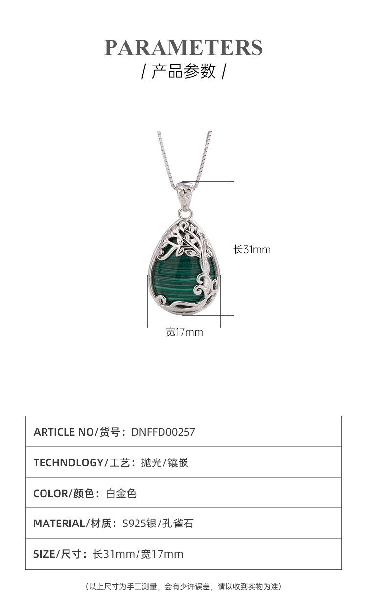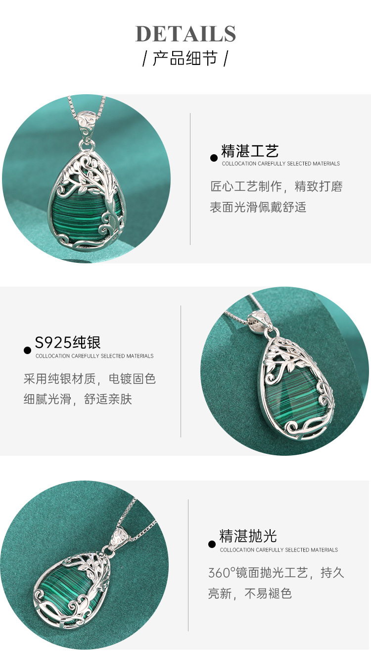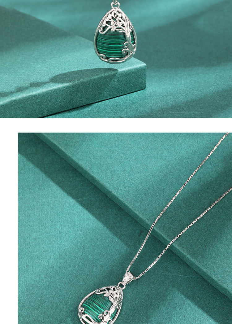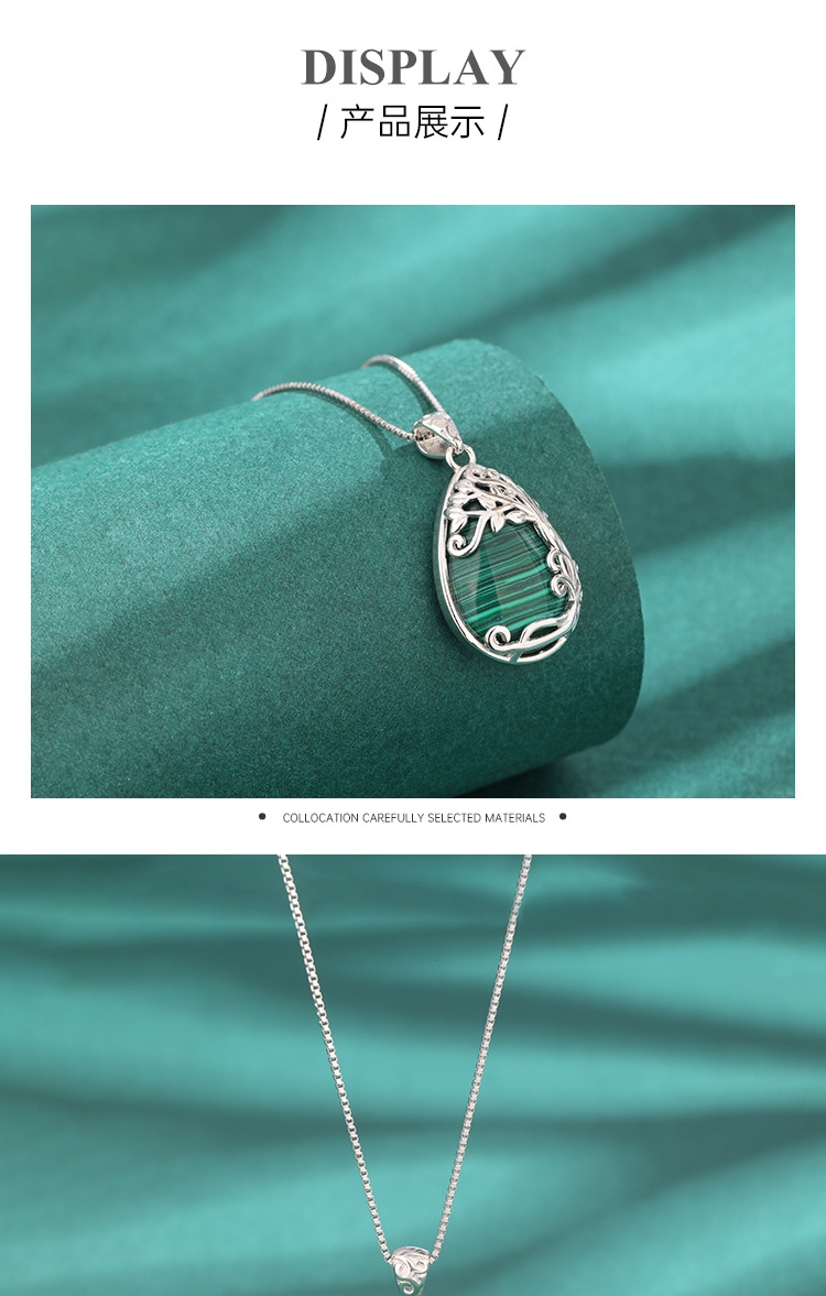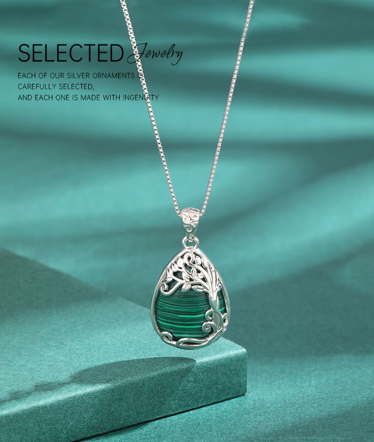925 plata esterlina en forma de gota de agua malaquita collar de lujo ligero europeo y americano nicho de alta calidad colgante de árbol de vida cadena clavícula
