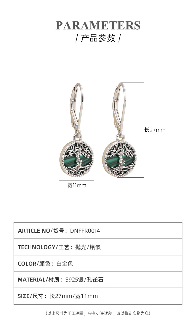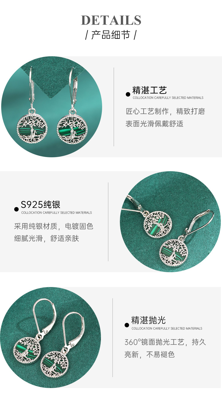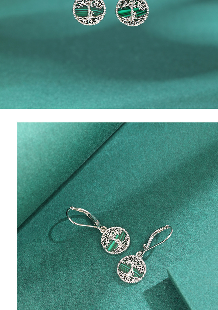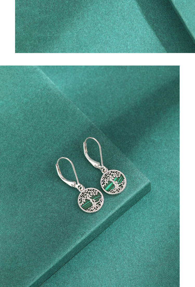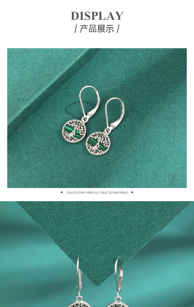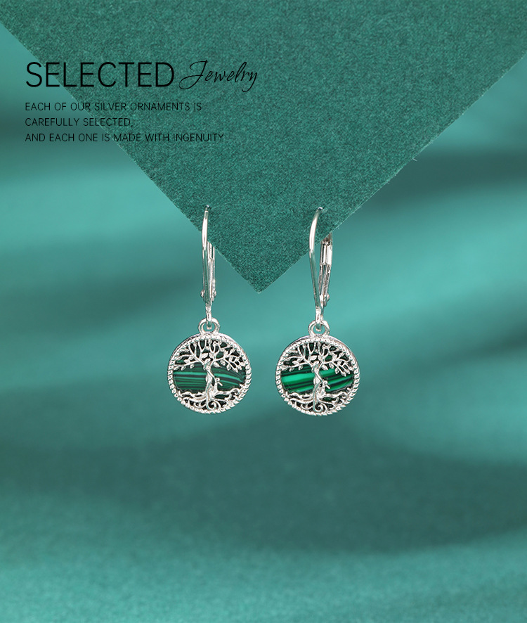 925 aretes redondos de plata esterlina árbol de la vida mujeres nicho europeo y americano diseño de alta calidad temperamento malaquita pendientes de aretes