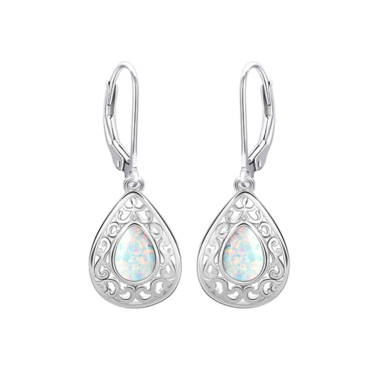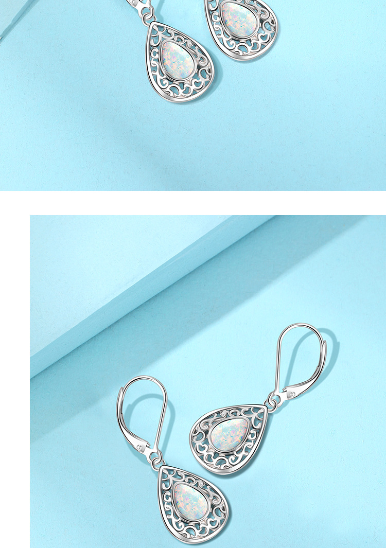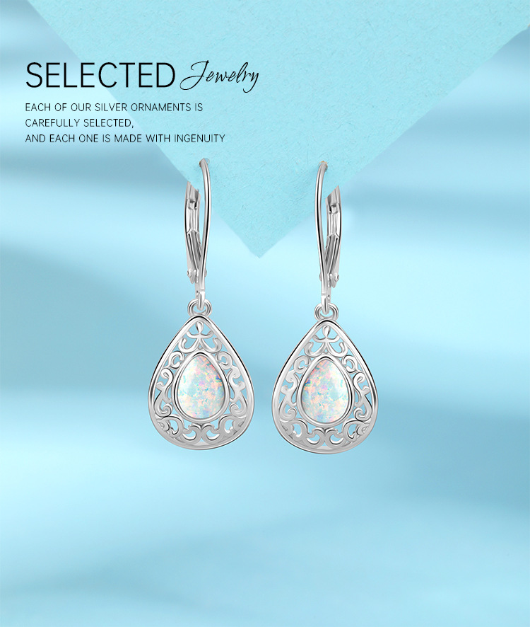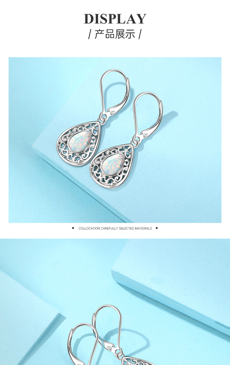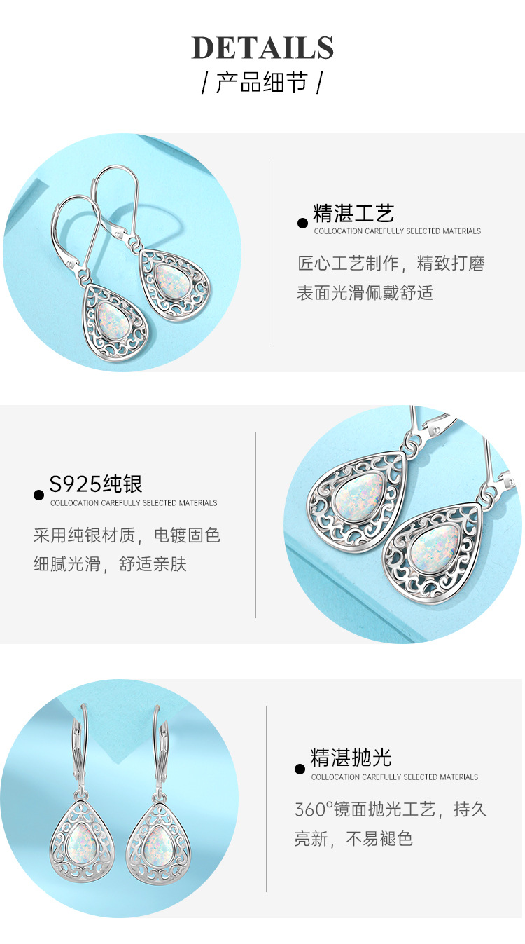 925 plata esterlina forma de gota de agua sintética OPPO pendientes para mujeres Europa y América lujo ligero nicho de alto nivel sensación OPPO pendientes de piedra