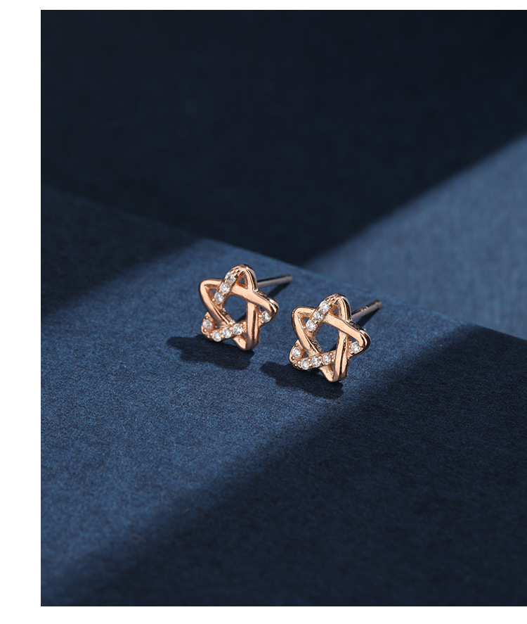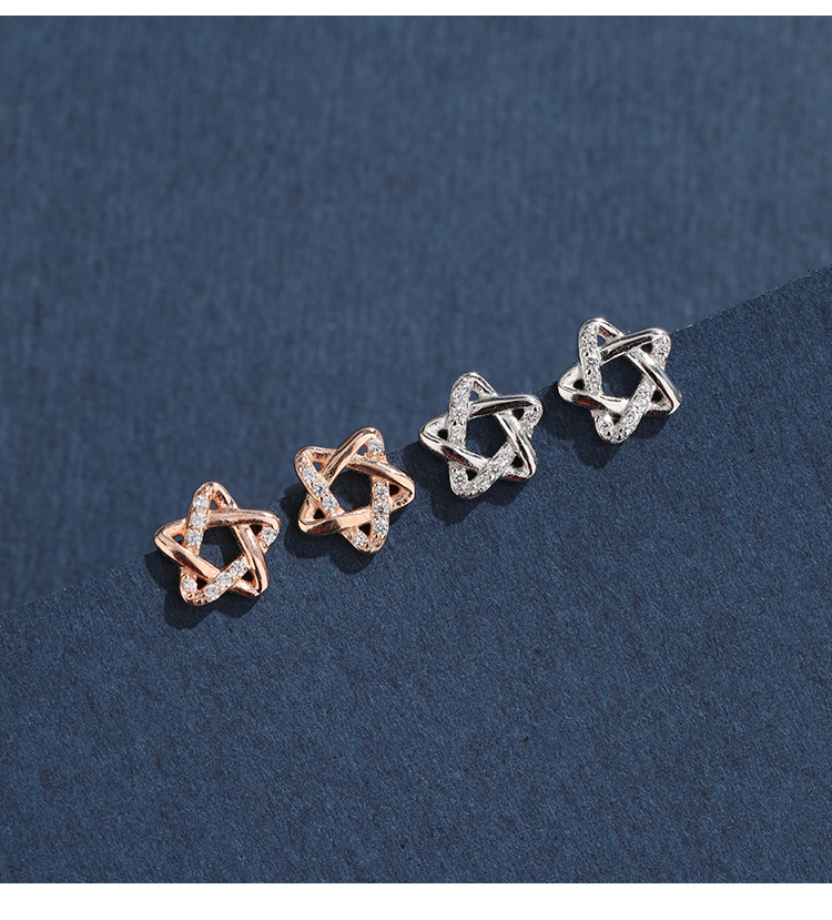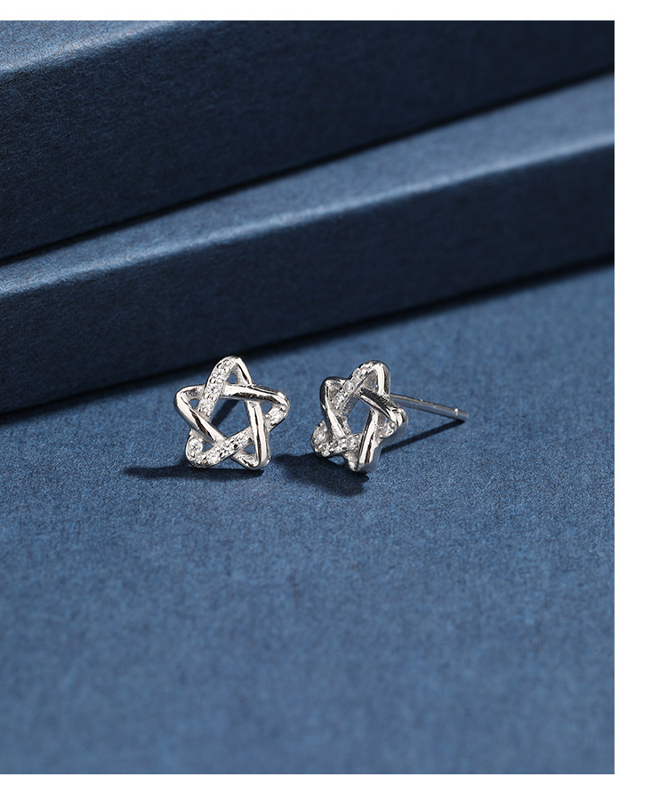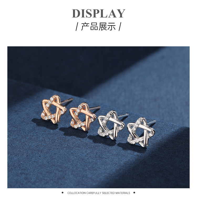 925 plata esterlina agujeros de orejas compactos de alta sensación pentagrama para mujeres nicho coreano simple pendientes joyas transfronterizas