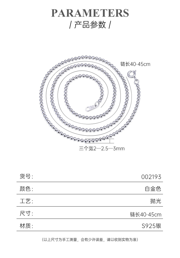 | Color | Cadena de perlas densas 2.5 - 16 pulgadas (40 cm), cadena de perlas densas 2.5 - 18 pulgadas (45 cm), cadena de perlas densas 3.0 - 16 pulgadas (40 cm), cadena de perlas densas 3.0 - 18 pulgadas (45 cm) |