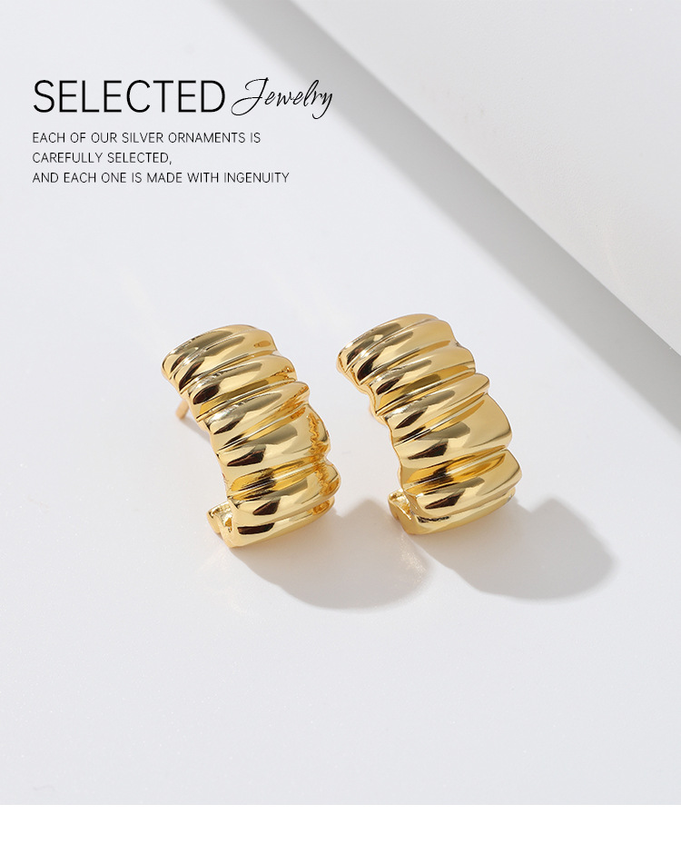 Aretes de oro plegados retorcidos 925 plata ligera lujosa alta sensación retro temperamento 2024 nuevos auriculares
