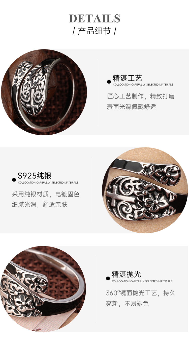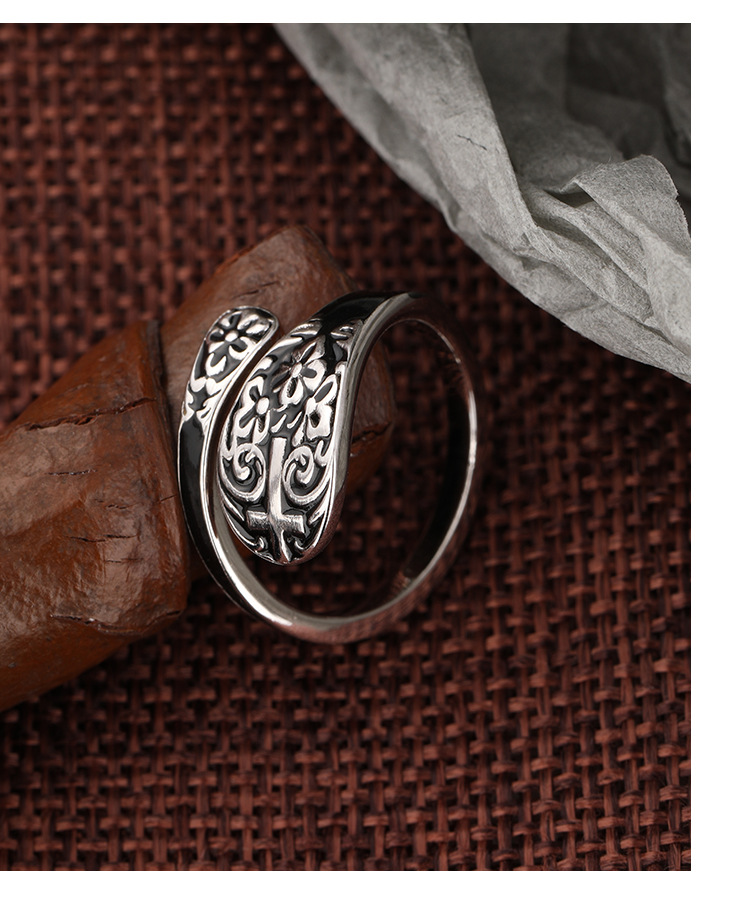 Cruz-Frontera de goteo de aceite caliente anillo de plata esterlina 925 personalidad anillo de viento oscuro hombres nicho índice dedo anillo