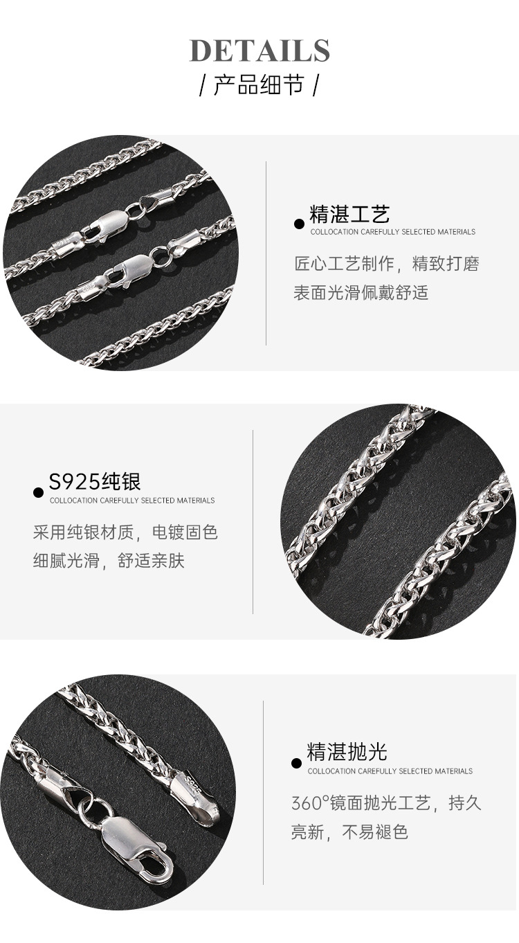 Collar de quilla de plata de ley 925 para hombre Hip-Hop simple para hombre Cadena de plata Chopin retro salvaje de alta gama Cadena de clavícula