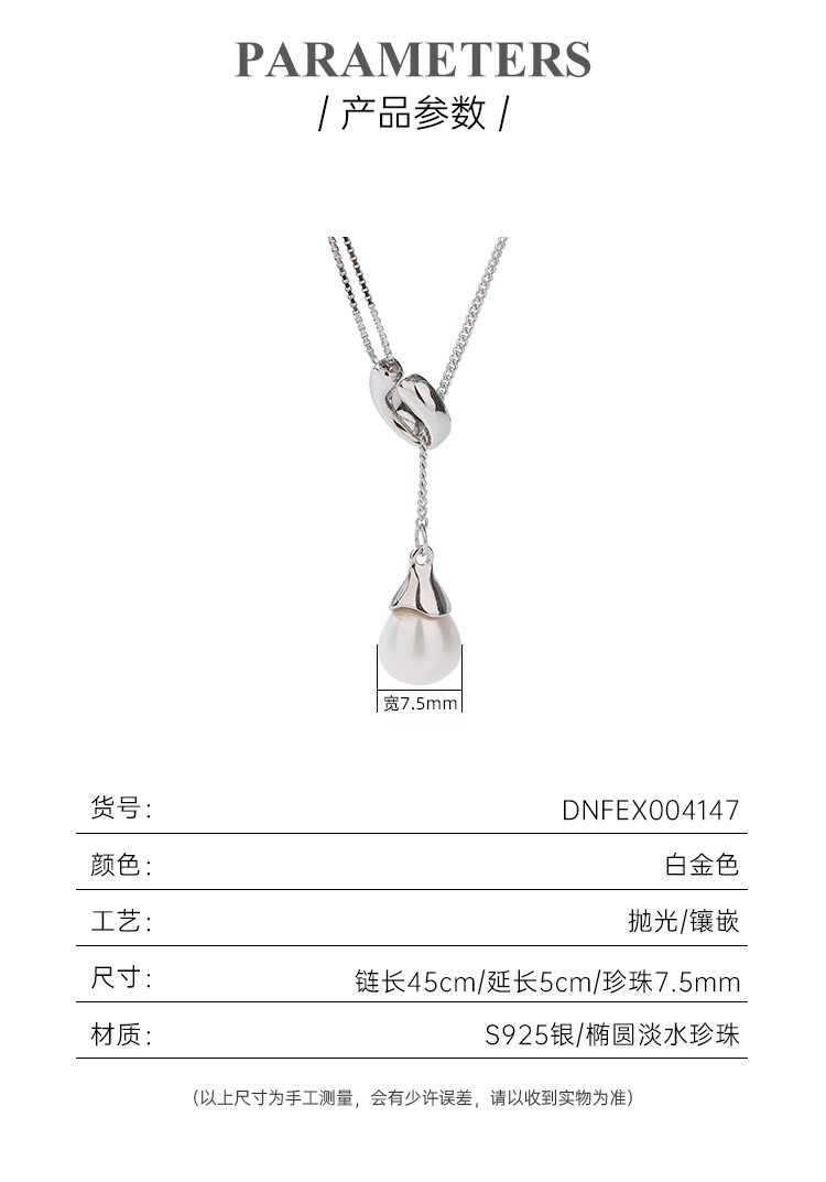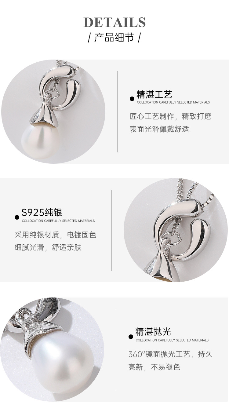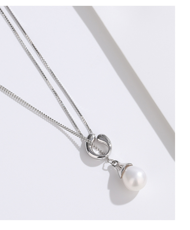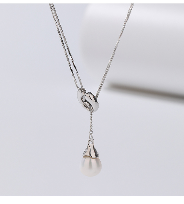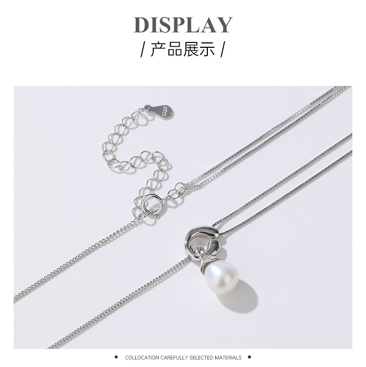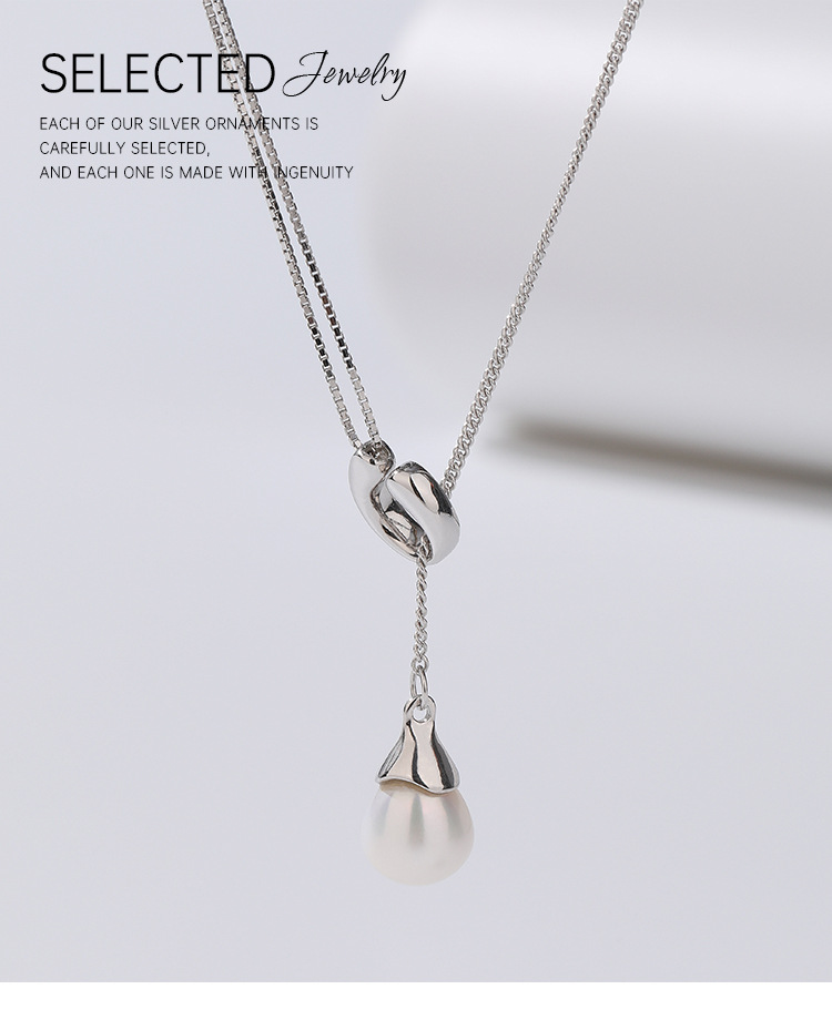 Plata de Ley 925 collar de perlas de agua dulce luz de lujo diseño de nicho nuevo colgante Cadena de clavícula Cadena de suéter de alto grado para mujer