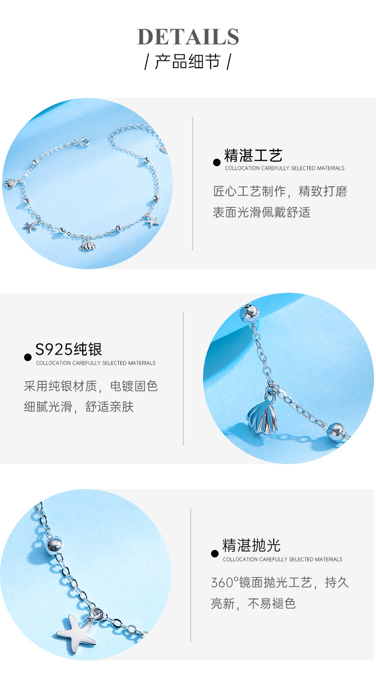 925 plata esterlina estrella Shell pulsera femenina verano luz lujo nicho diseño temperamento de alta calidad pulsera joven
