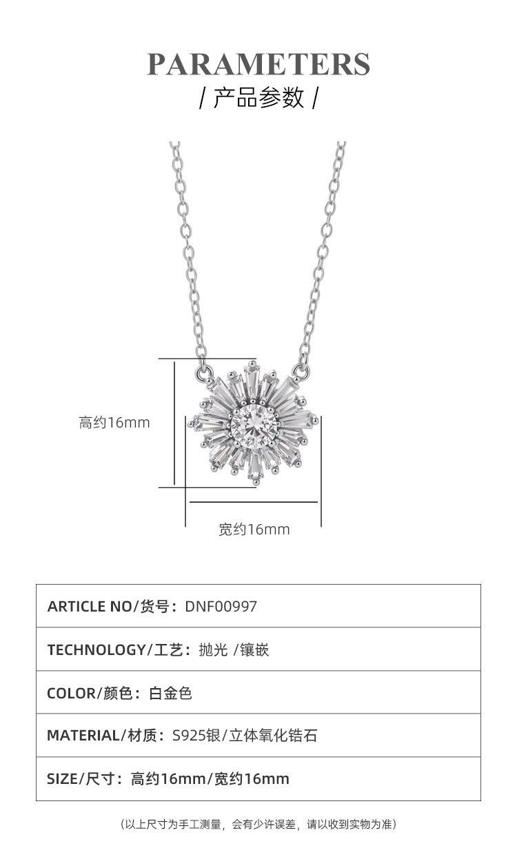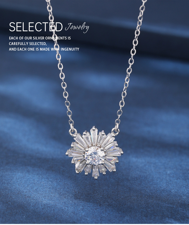 Girasol S925 Collar de plata esterlina Mujer Lujo ligero Moda de nicho Diamante Copo de nieve Colgante de cadena de clavícula Regalo de San Valentín