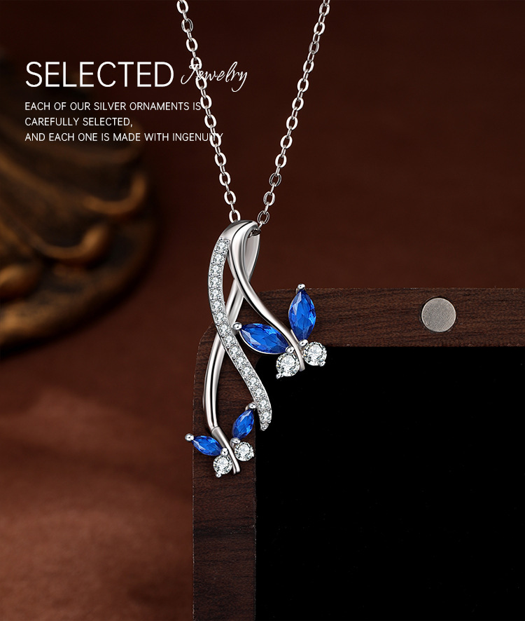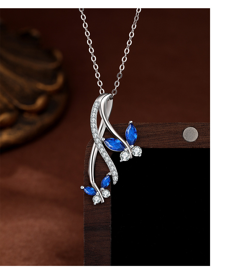 Collar colgante de mariposa de circonita azul con incrustaciones de plata de ley 925 para mujer, diseño de nicho de lujo ligero, cadena de clavícula de todo fósforo de alta gama