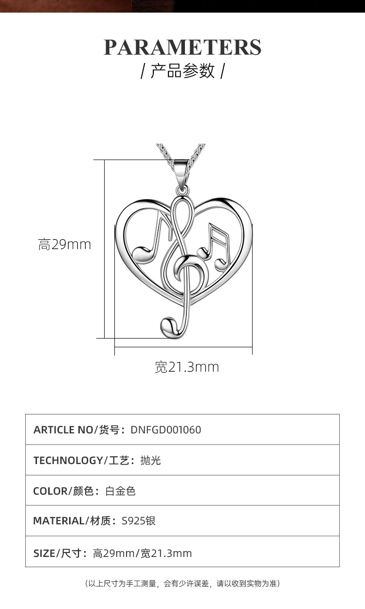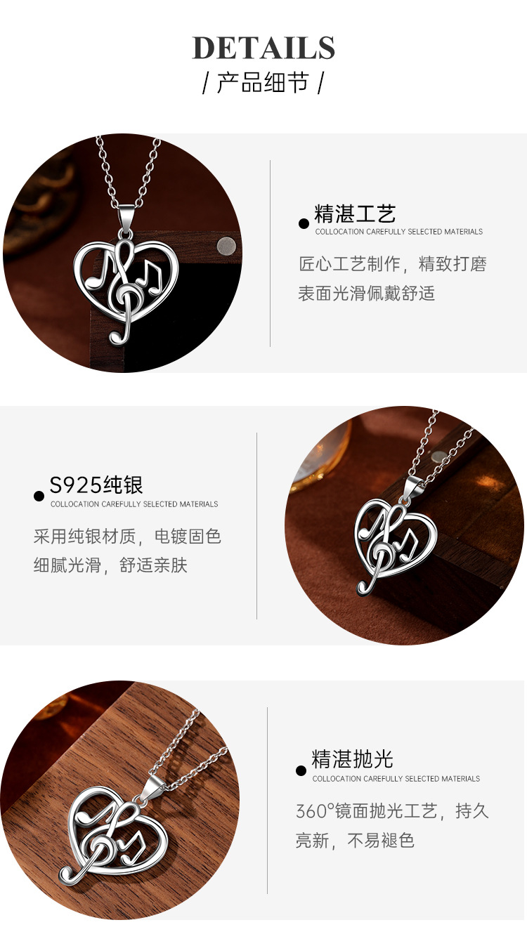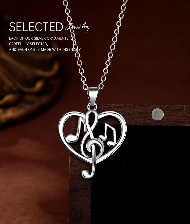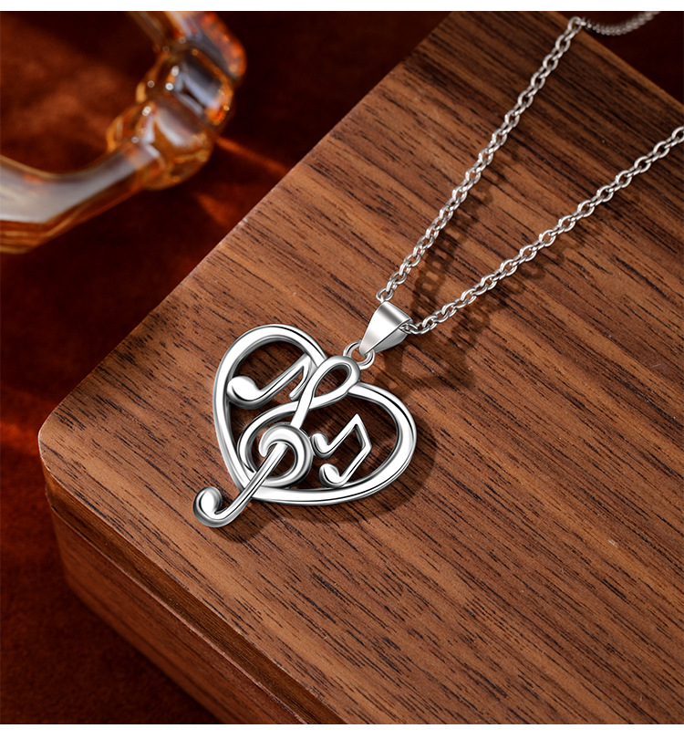 Collar de símbolo musical de amor de plata de ley 925 transfronterizo europeo y americano Estética femenina Colgante de clave de tono alto Cadena de clavícula de todo fósforo