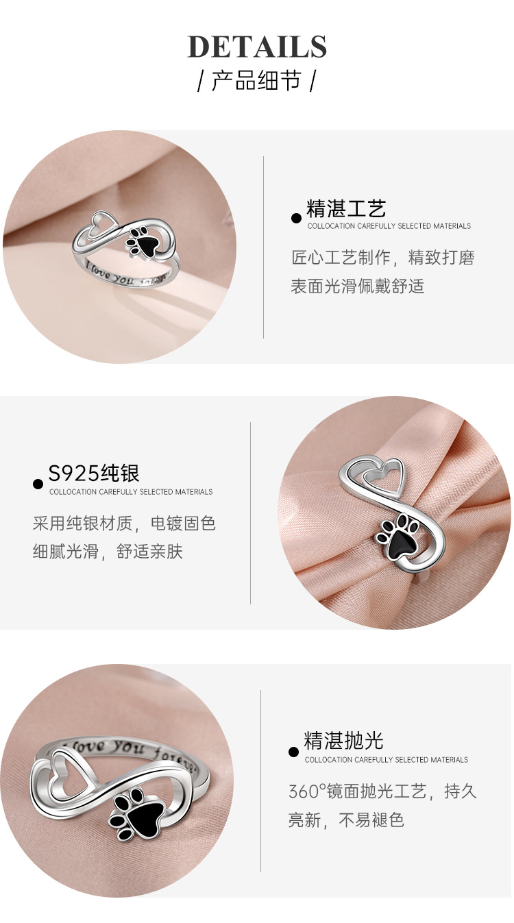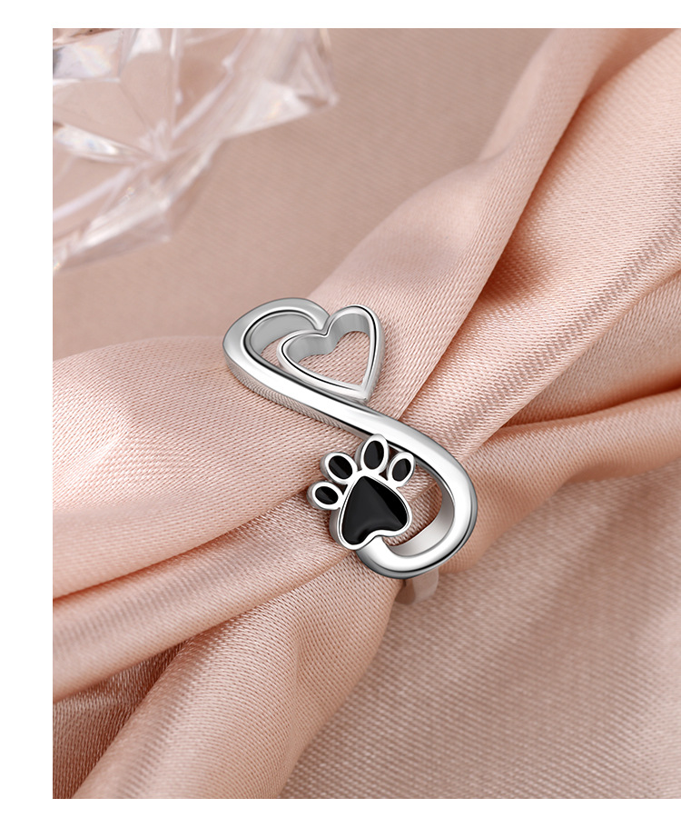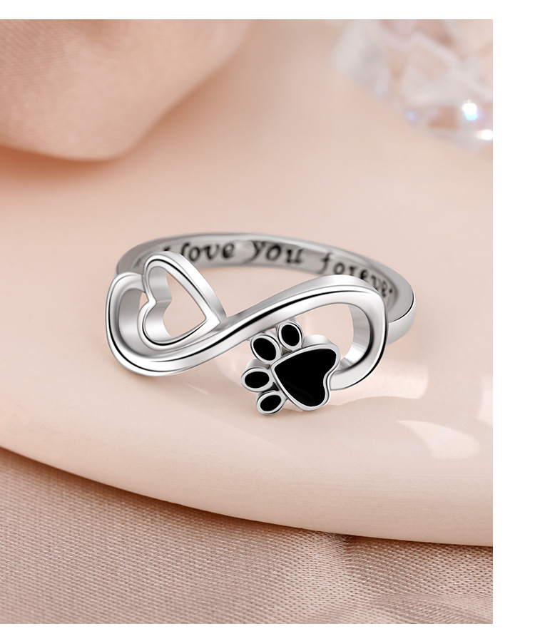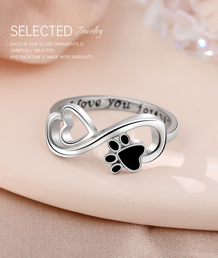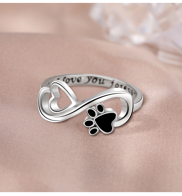 Temu Amazon Cross-border explosiva 925 plata de ley anillo infinito mujer amor popular europeo y americano cachorro garra de gato anillo