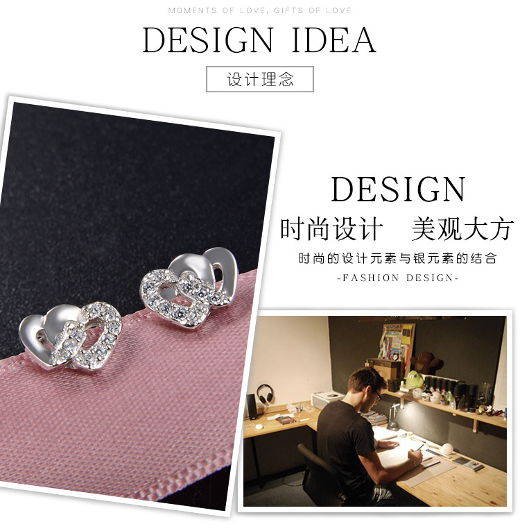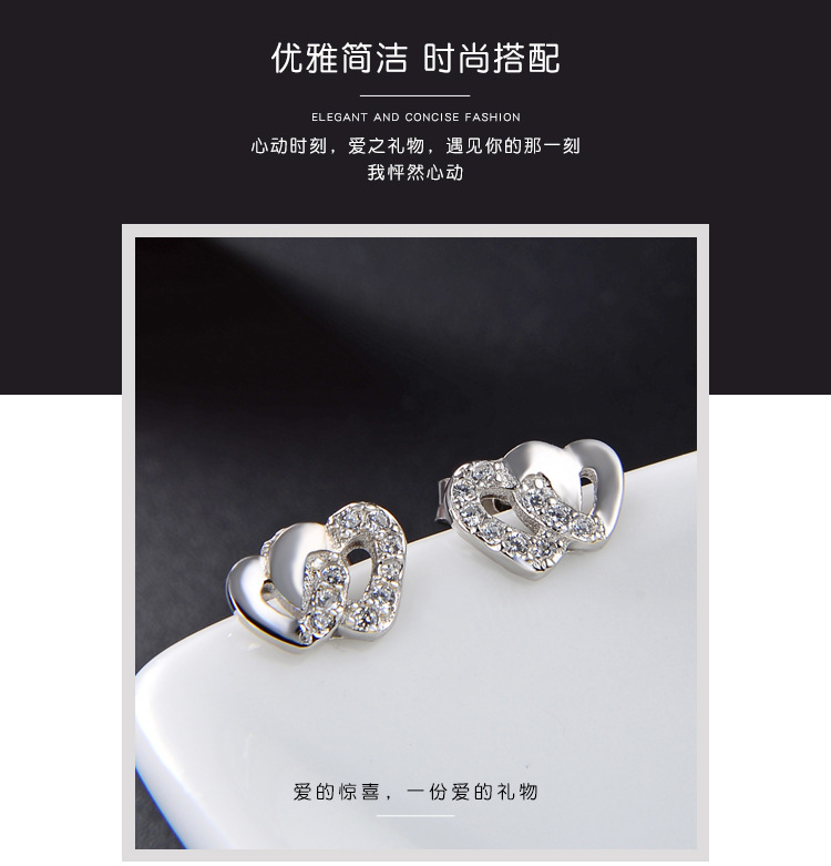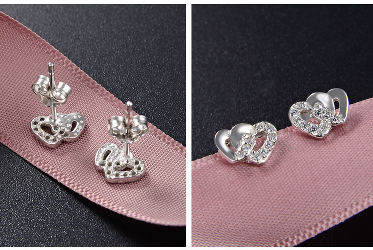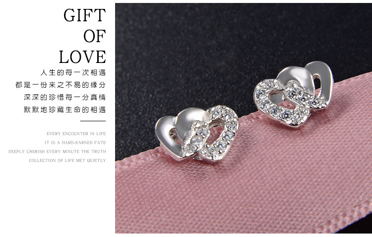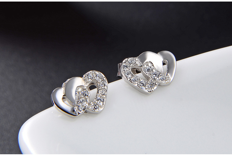 Pendientes de circonita con microincrustaciones de plata de ley 925, temperamento de lujo ligero femenino, doble amor, personalidad linda