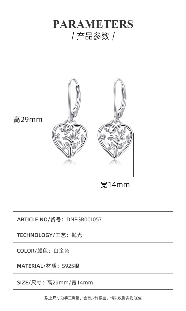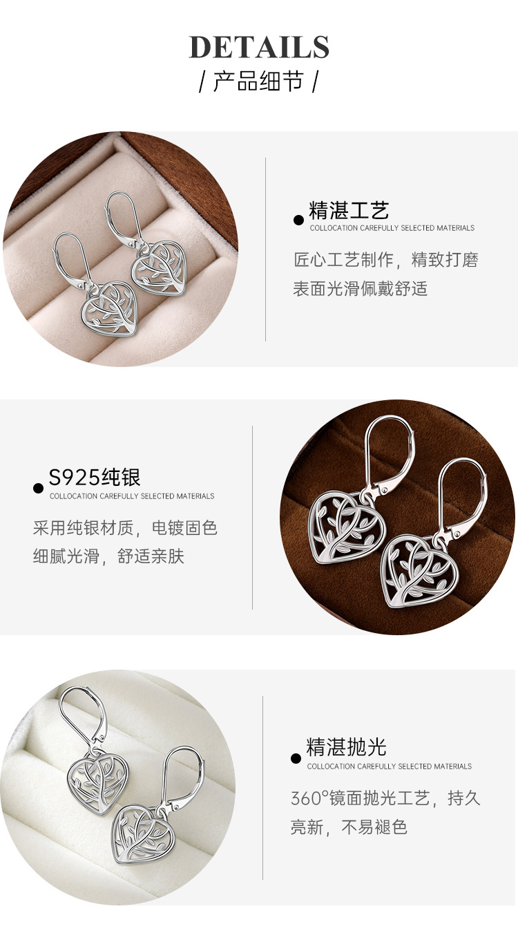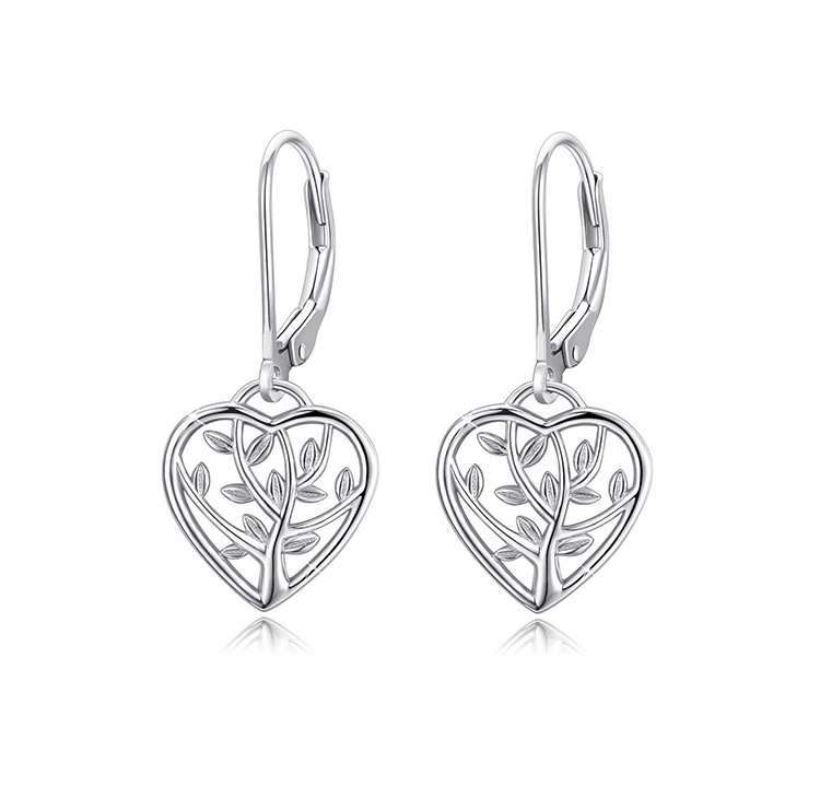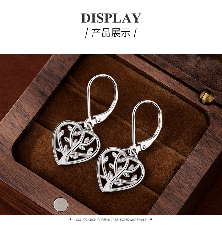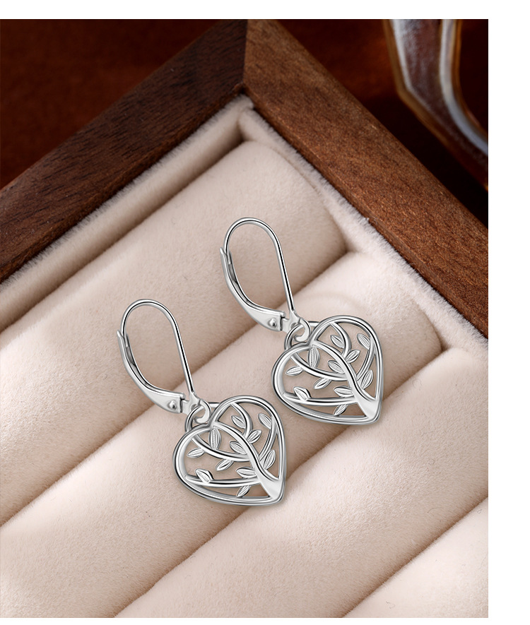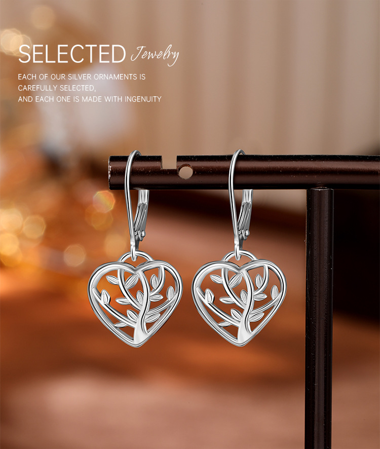Pendientes de árbol de la vida de plata de ley 925 nuevos transfronterizos Pendientes de corazón hueco simple de moda de Amazon europeo y americano Pendientes