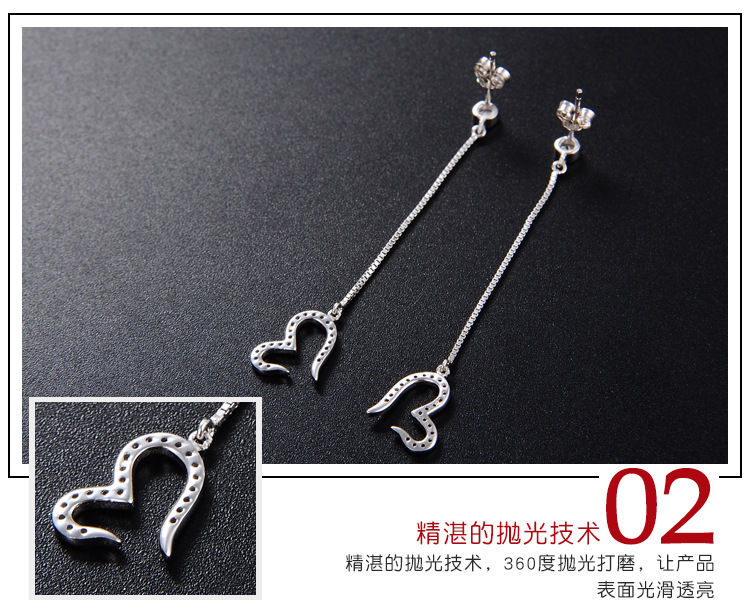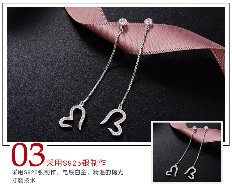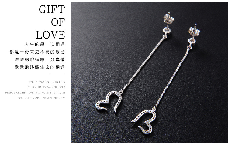 Pendientes de amor de diamantes con incrustaciones de plata de ley S925 Pendientes de lujo ligero de temperamento de nicho femenino