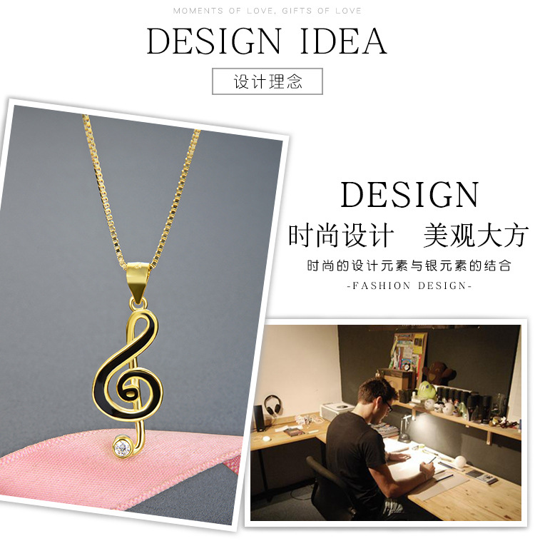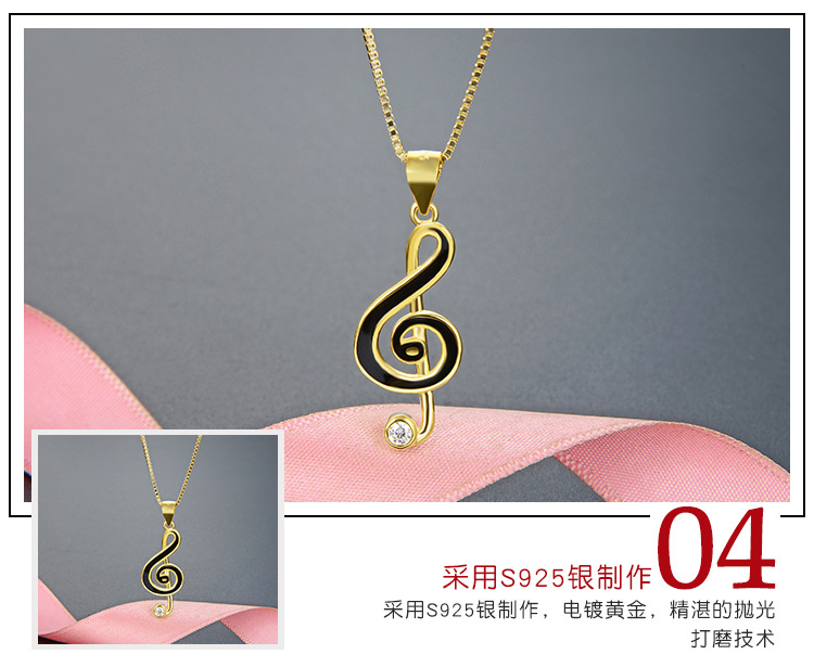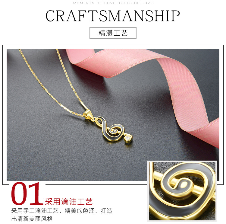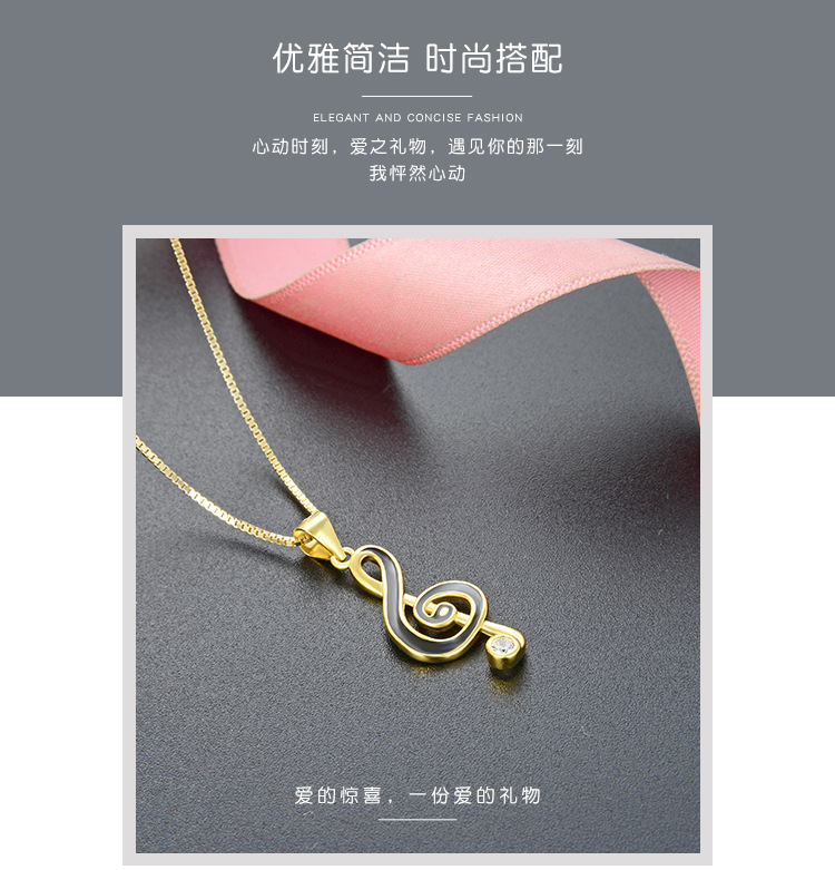 Europa y los Estados Unidos transfronterizos DIY adornos de goteo de aceite amor nota de ritmo colgante de plata esterlina 925 moda collar de diamantes accesorios para mujeres