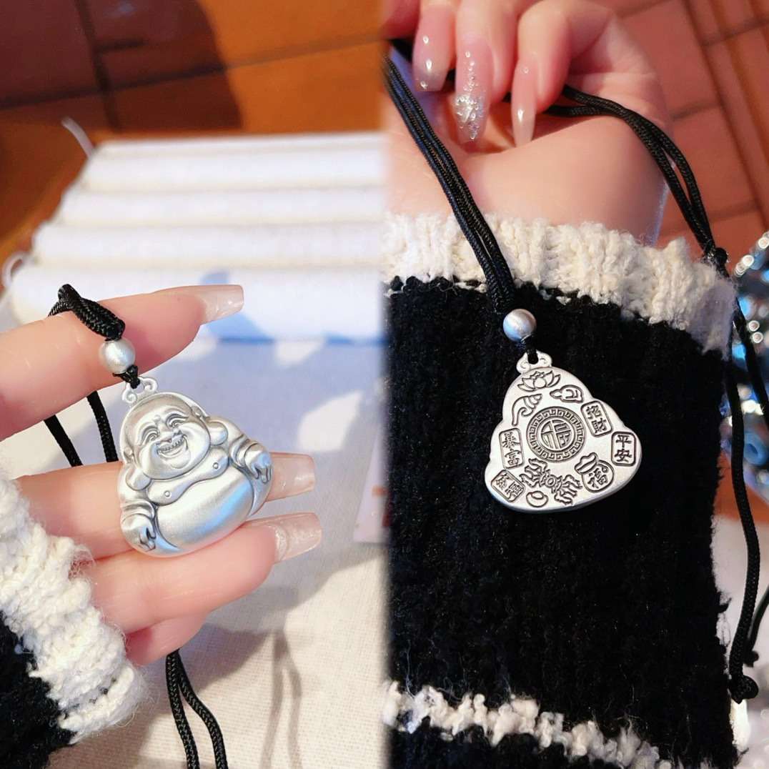 Plata sólida Maitreya Buddha Guanyin colgante 999 plata esterlina marca nacional de marea de Buda Ji Yan sin incidentes collar de cuerda tejida a mano