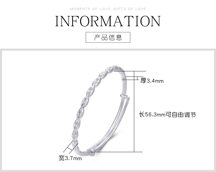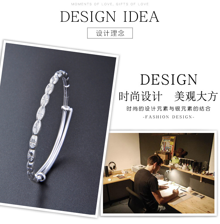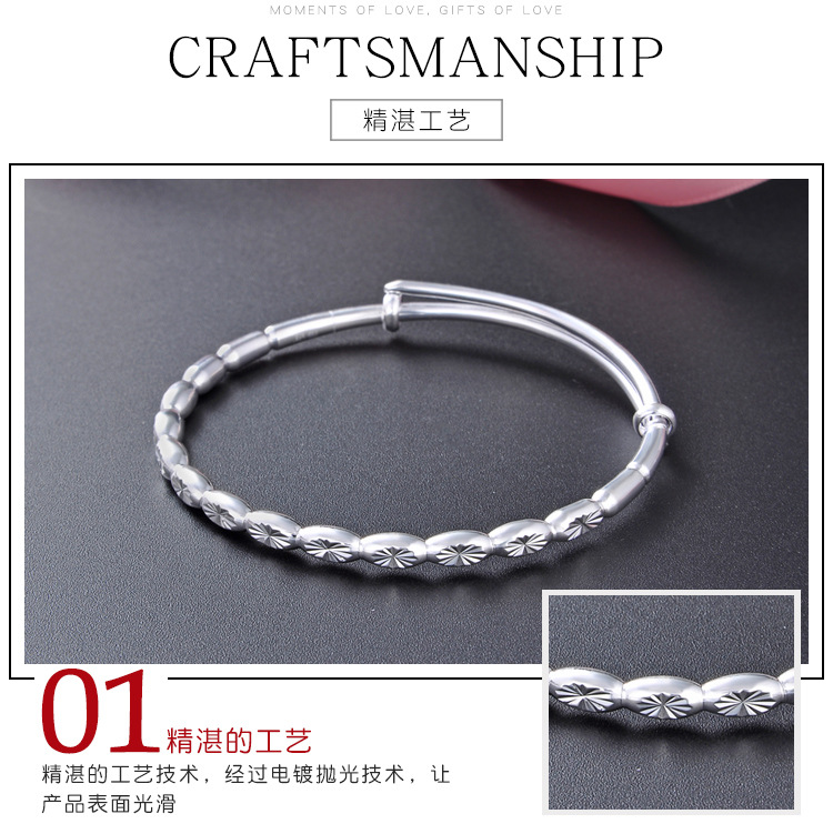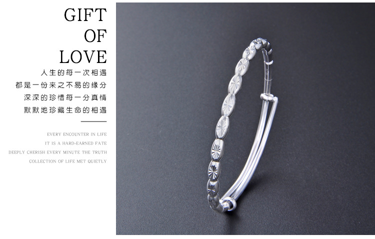 Brazalete de plata esterlina de bambú 999 pie de plata ajustable de bambú pulsera de plata regalo del día de la madre