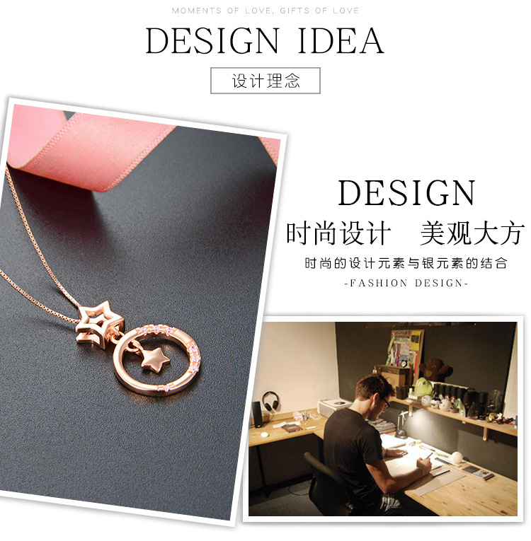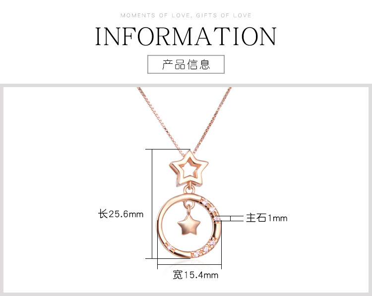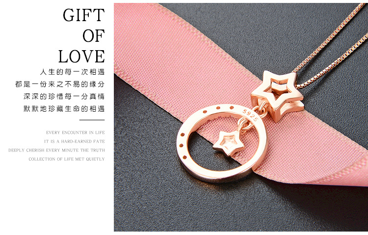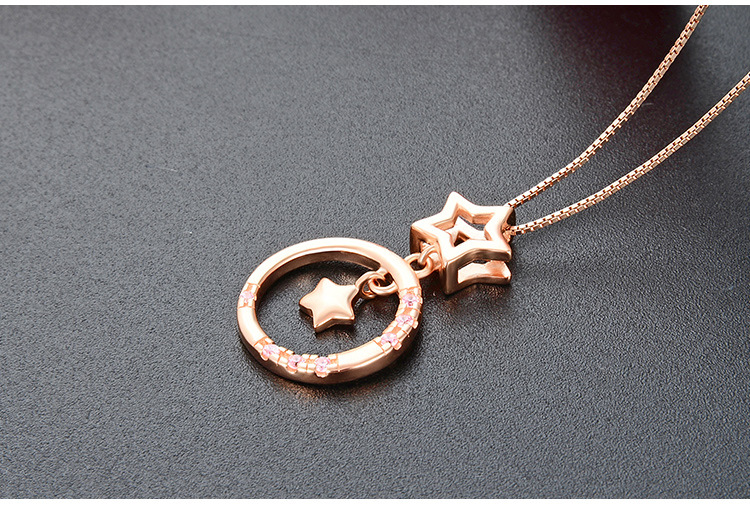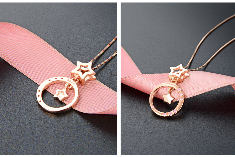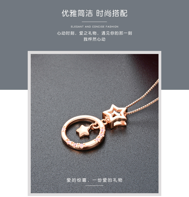 Collar de clavícula de plata esterlina S925 estrella de mujer anillo circular zircon diamantes dulces simplicidad inswind red joyas colgante rojo