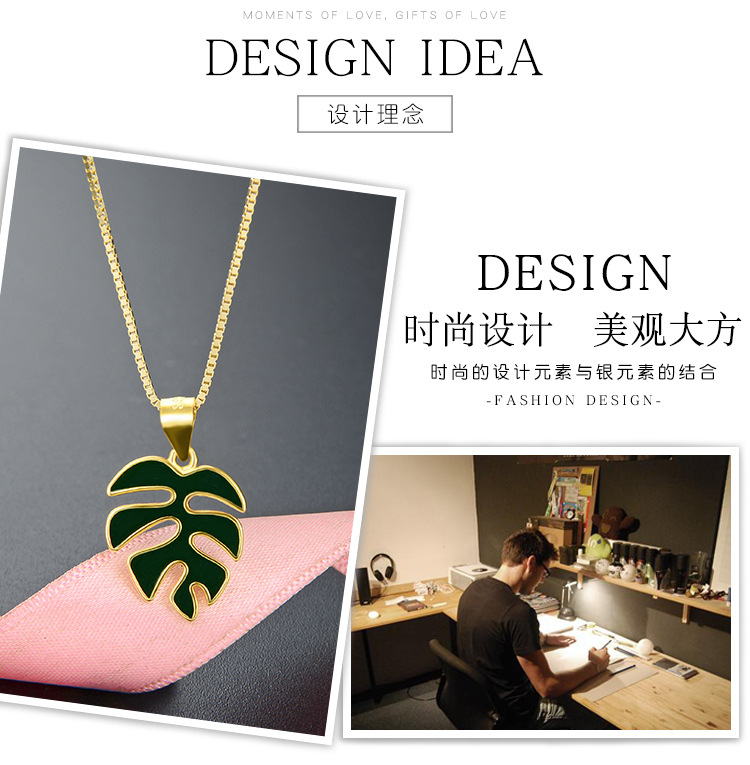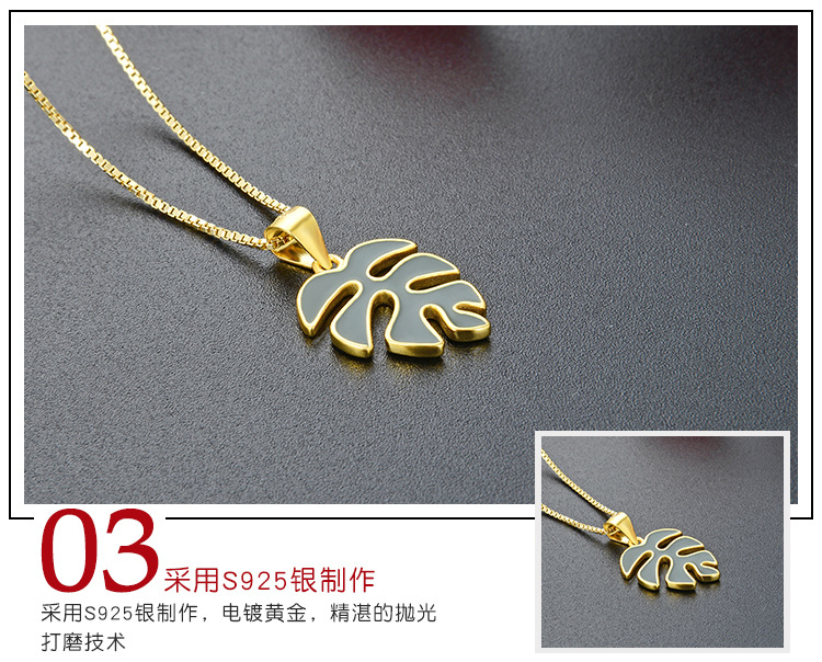 Transfronterizo Amazon goteo collar de hojas de aceite mujer 925 plata esterlina pequeña cadena de clavícula fresca versátil tortuga colgante de hojas