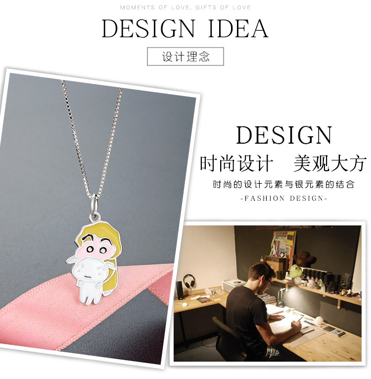 Caricatura animada lindo perro pequeño pijama blanco lápiz pequeño nuevo collar DIY joyas goteando colgante de plata 925