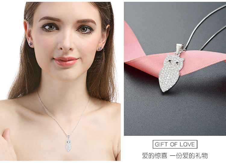 Transfronterizo nuevo 925 plata hermoso collar búho mujer europea y americana alta sensación simple colgante de clavícula de animales