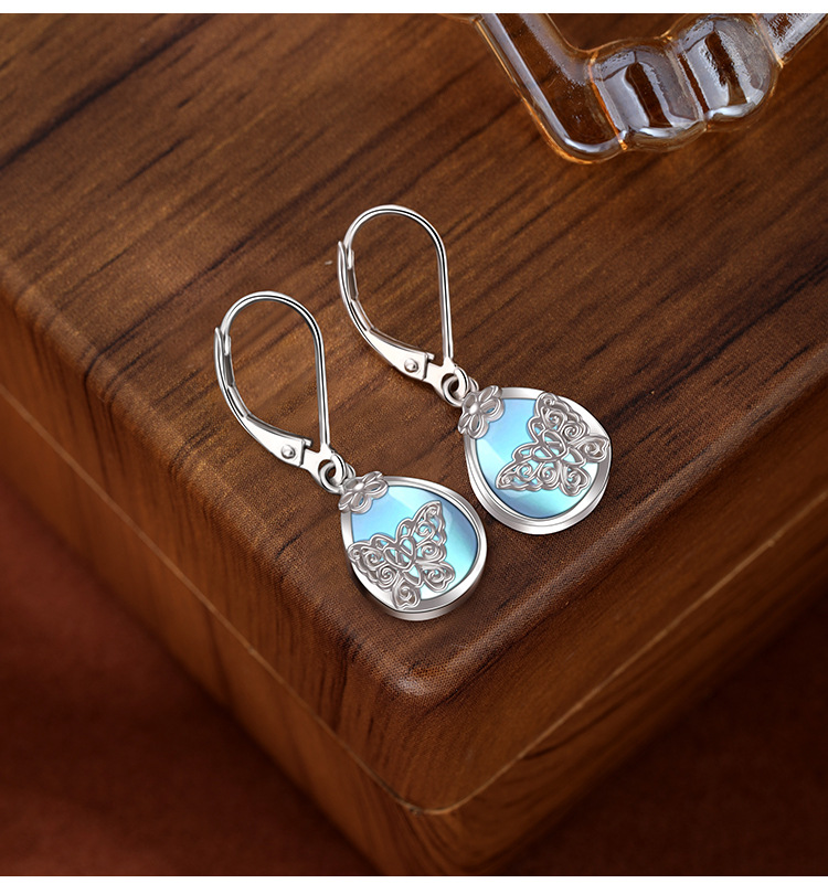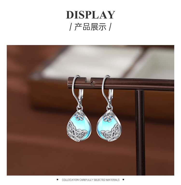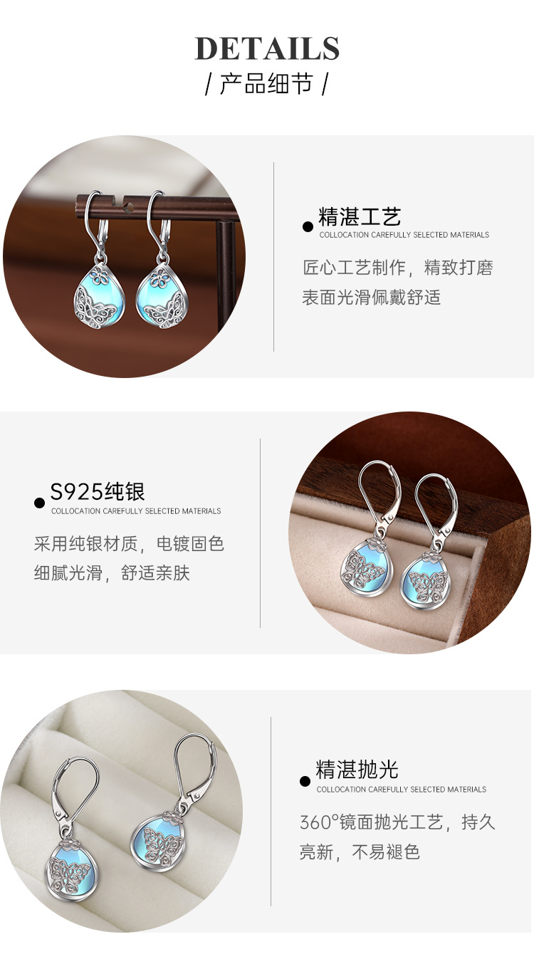 925 aretes de mariposa de flores de plata esterlina para mujeres lujosas europeas y estadounidenses de alta sensación de auriculares de piedra de luz de la luna Amazon auriculares transfronterizos