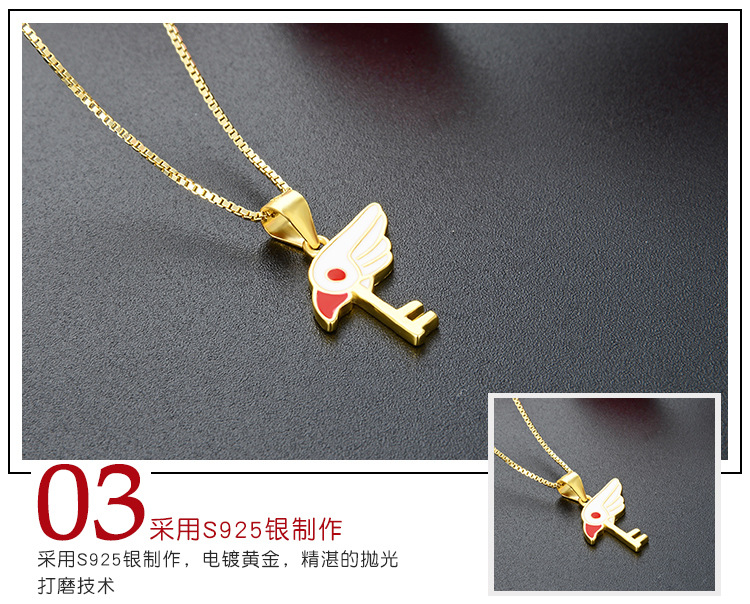Transfronterizo Amazon joyería caliente goteo de dibujos animados pequeño cerezo cabeza collar de llaves para mujeres colgante de plata 925