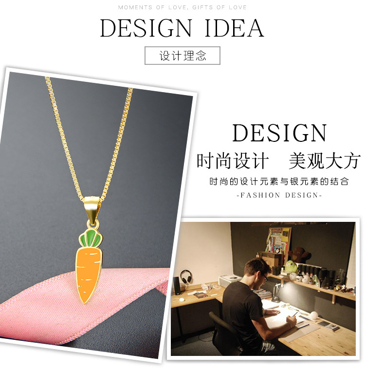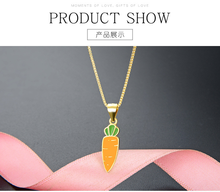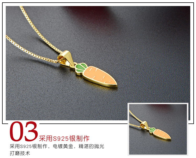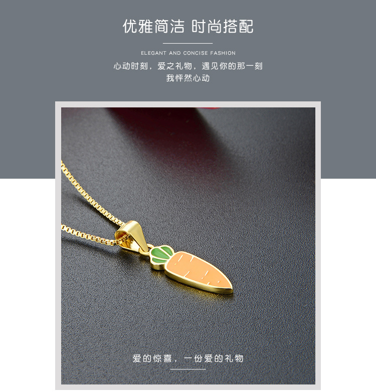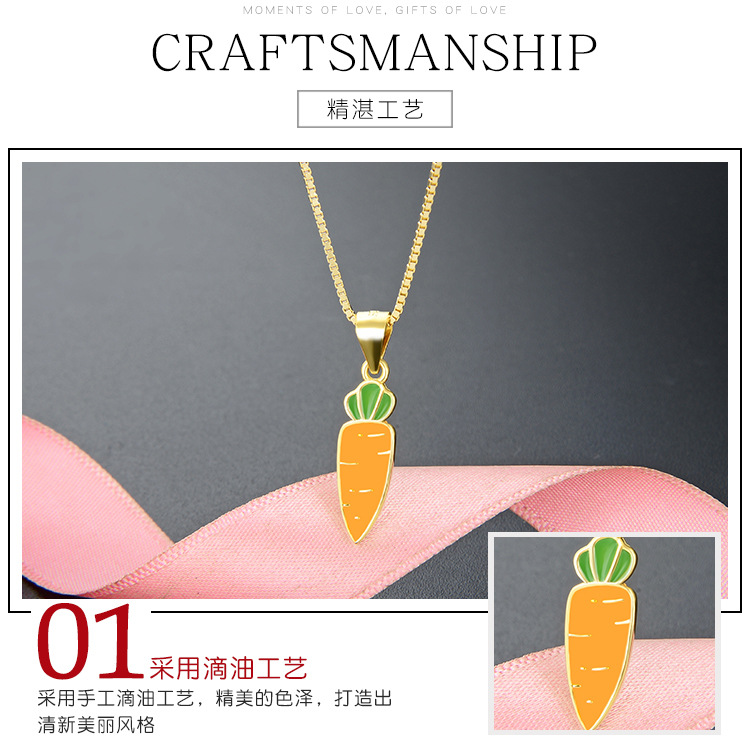 Amazon venta transfronteriza caliente 925 collar de plata esterlina para mujeres fresco simple dibujos animados verduras pequeñas zanahorias colgante goteo de aceite