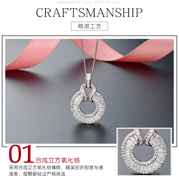 925 plata esterlina collar de zircón redondo mujer moda transfronteriza temperamento ligero lujoso zirconio exquisito colgante de diamante completo cadena de clavícula