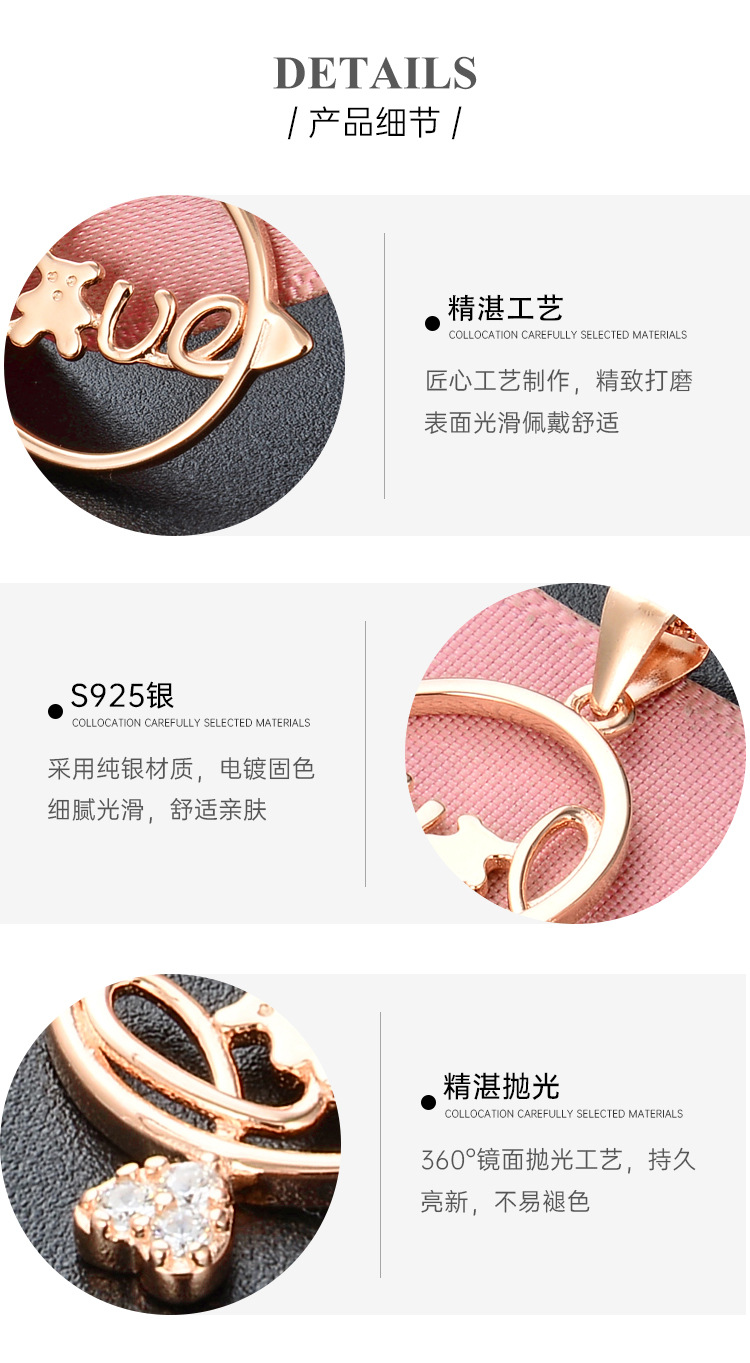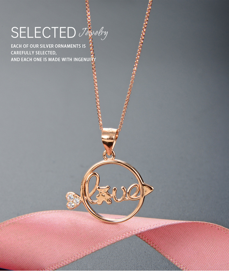 Transfronterizo Amazon inswind 925 plata esterlina lindo collar de letras de oso mujer moda ligera lujo colgante de amor
