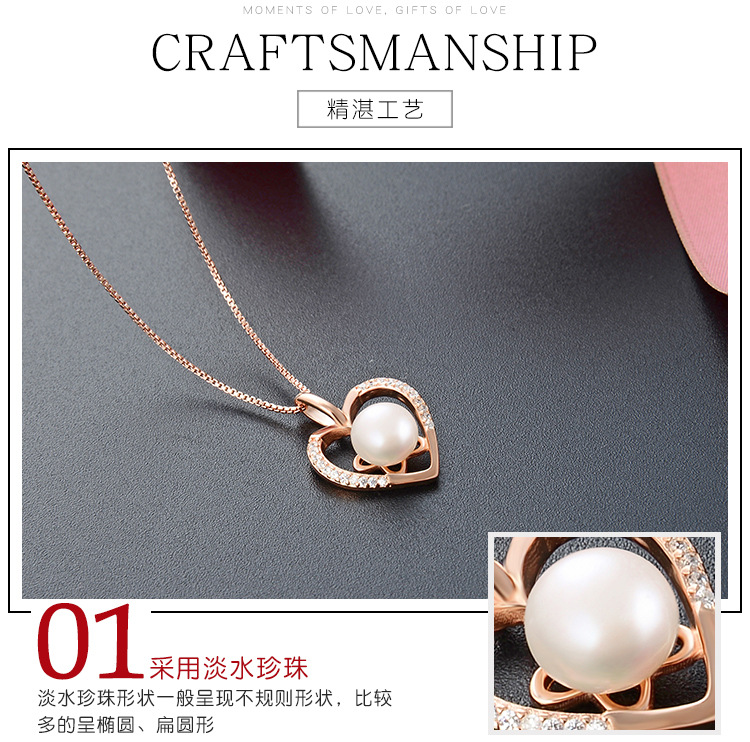 925 plata esterlina collar de perlas de agua dulce mujer simple versátil de alto nivel sensación de micro piedra colgante de amor cadena clavícula