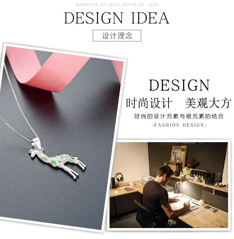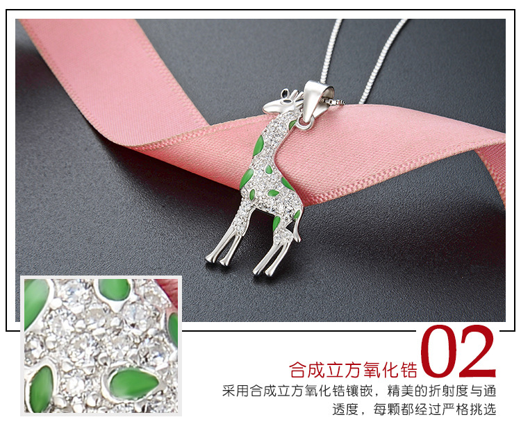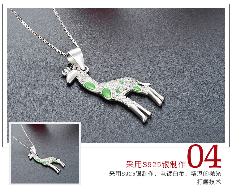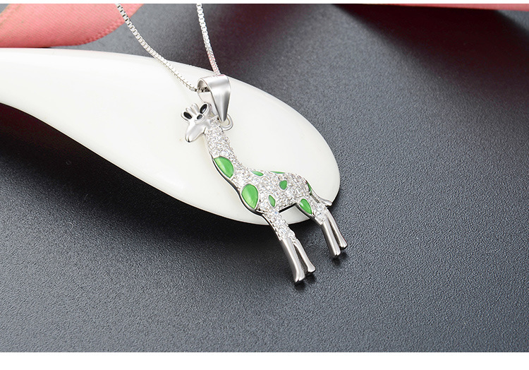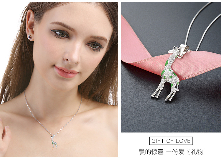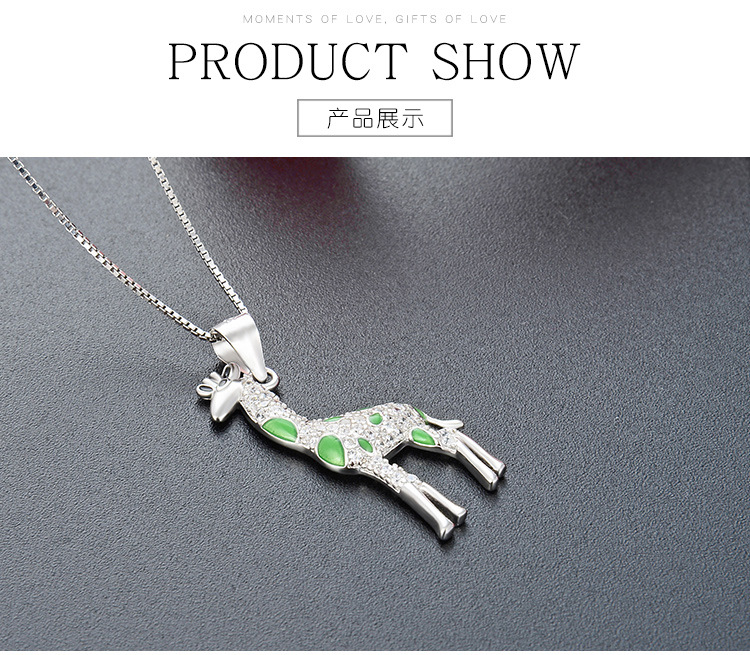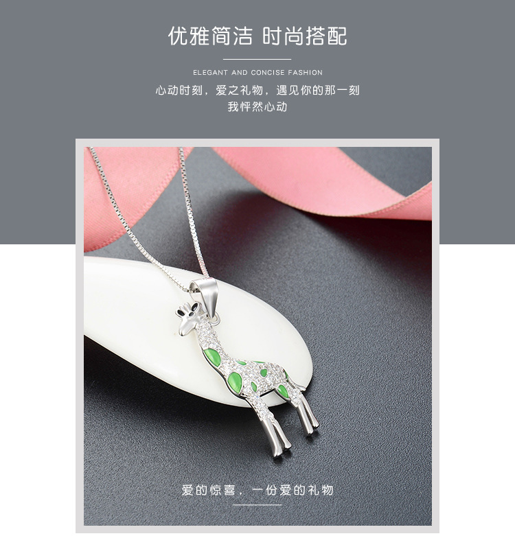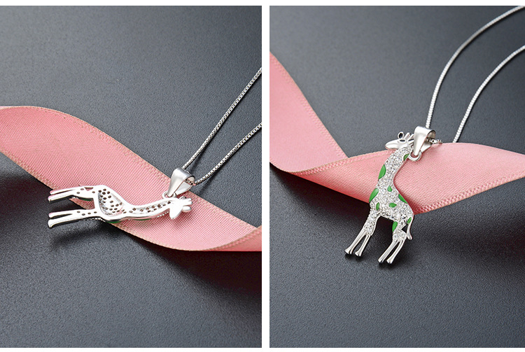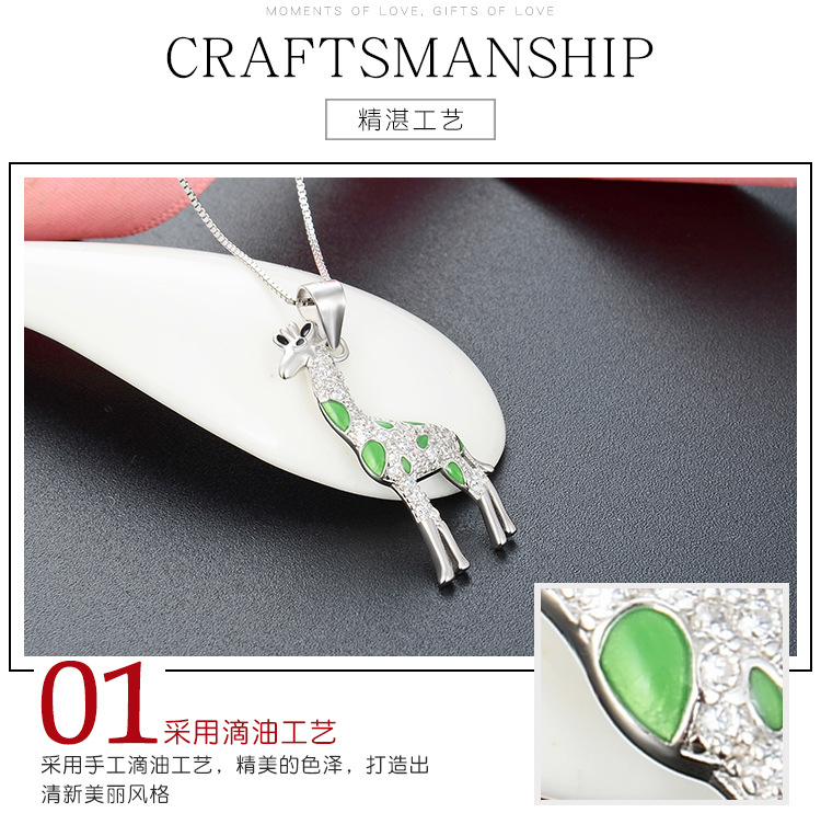Europa y los Estados Unidos lindos dibujos animados 925 plata esterlina girafa collar de venta transfronteriza caliente temperamento goteo de aceite colgante animal cadena clavícula