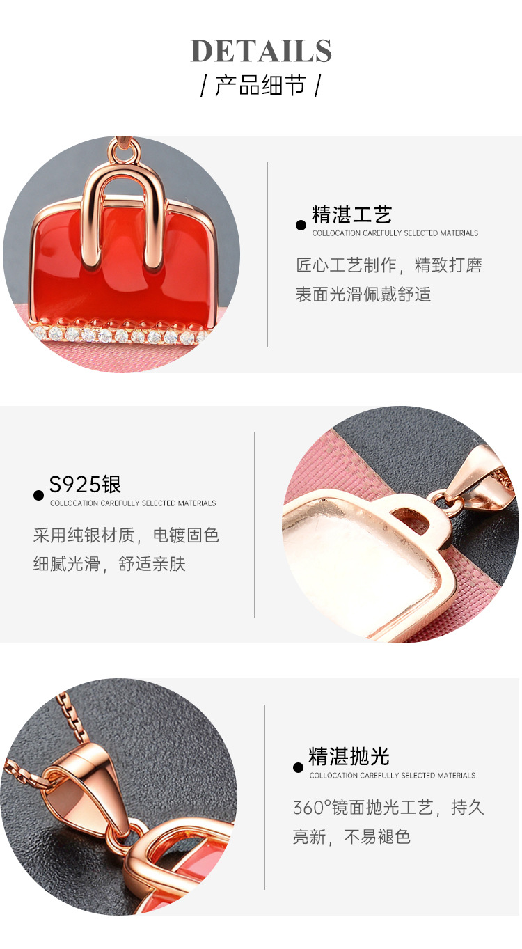 Joyas transfronterizas 925 bolsillo rojo de plata esterlina collar de moda lujosa ligera nicho de alto nivel colgante de goteo de colgante de clavícula