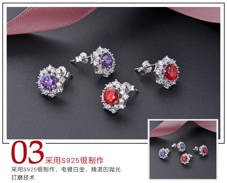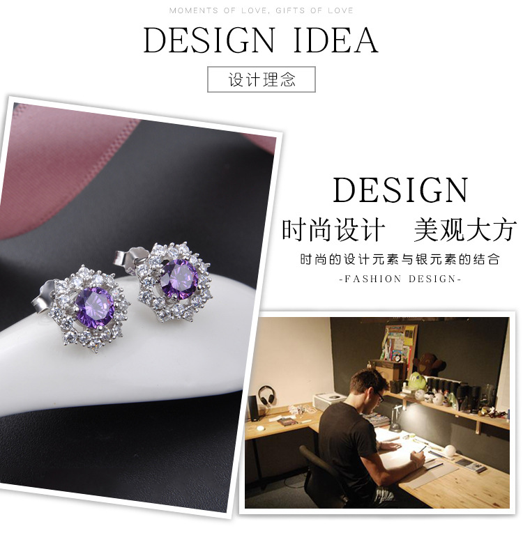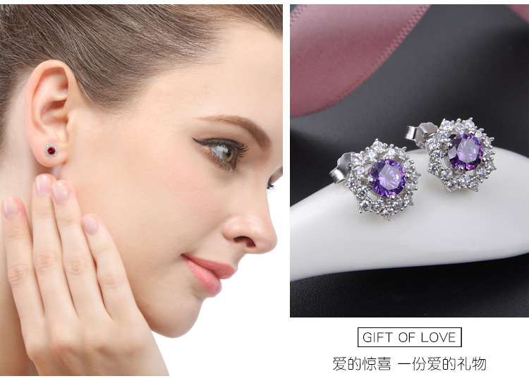 Cross-border wish Amazon AliExpress nieve zircon pendientes de plata esterlina 925 estilo sol simple pendientes para mujeres