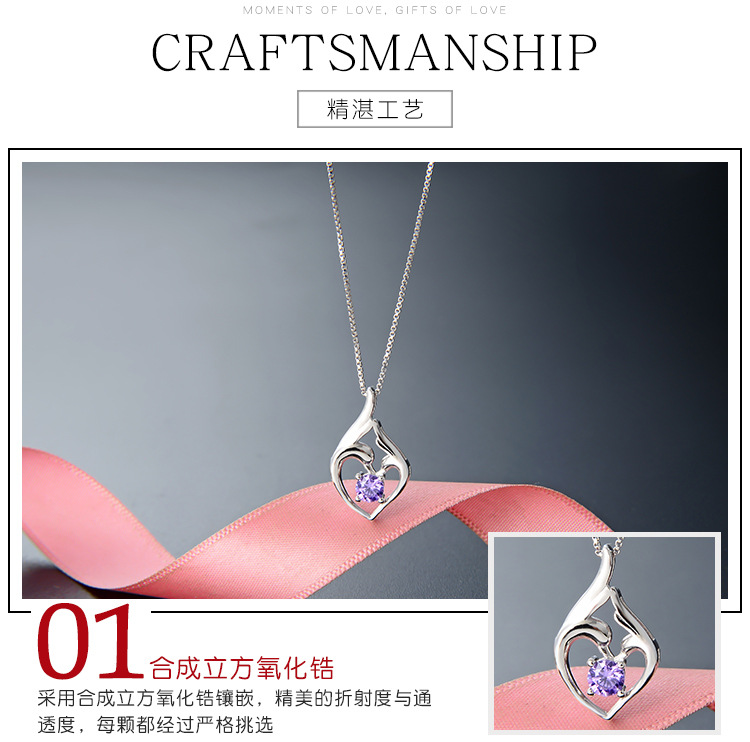 925 plata esterlina cisne collar de corazón nicho femenino simple versátil colgante de piedra colgante de clavícula regalo del día de la madre