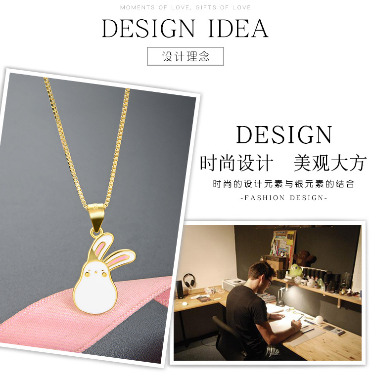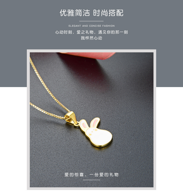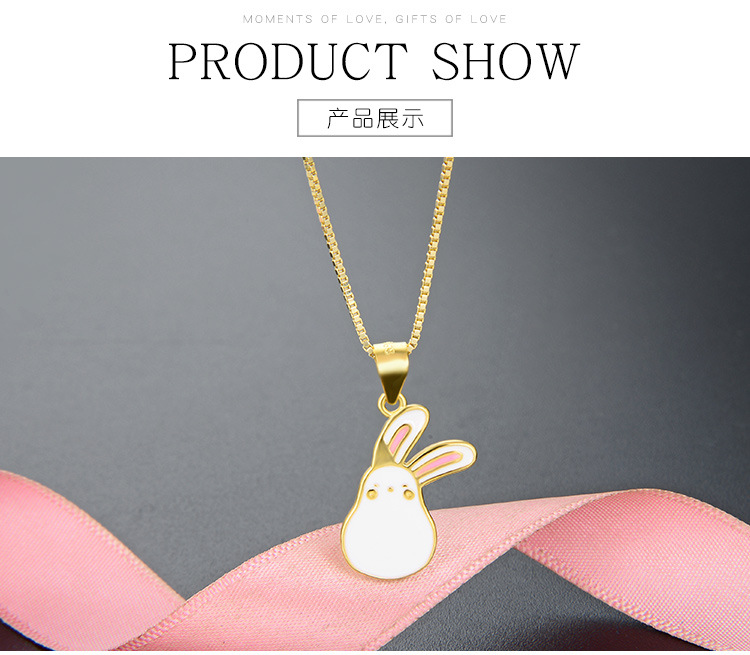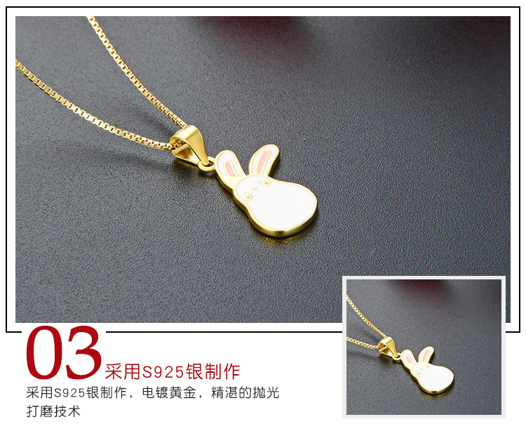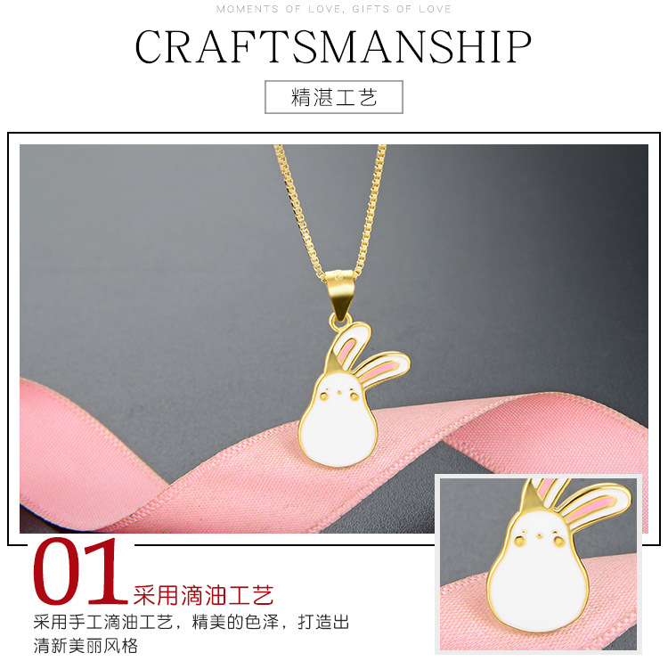 Comercio exterior transfronterizo creativo de dibujos animados conejo blanco collar de plata esterlina mujer 925 adorable colgante de aceite de goteo de animales
