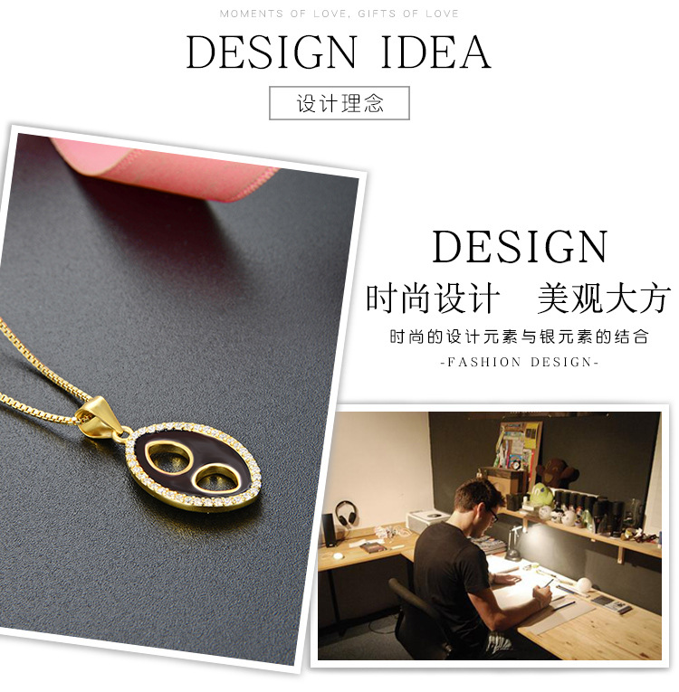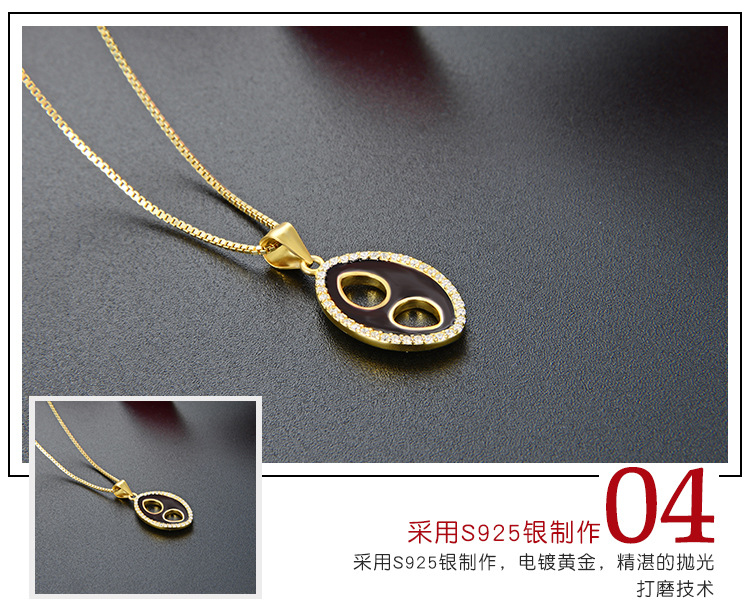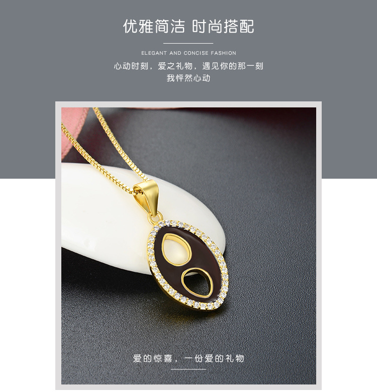 Transfronterizo nuevo 925 plata esterlina colgante de goteo de aceite elíptico collar de piedra de la mujer moda europea y americana cadena de clavícula